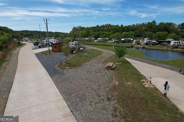 The North Georgia mountains are calling all camping enthusiasts! A gravel pull-through RV lot near Blue Ridge, GA with private pond access. This 0.25-acre deeded lot is designed for easy setup and use, with a pull-through layout that accommodates a variety of RV sizes. One of the standout features is the direct access to a private pond, where owners and guests can enjoy catch-and-release fishing just steps from the lot. If you're looking for a personal getaway or an investment property, this setup offers flexibility and appeal. Located in a community that allows short- and long-term rentals, this site gives you the option to use it when you want and rent it when you're away. Improvements can be made after an approval by the association. You're also within close proximity to Blue Ridge, GA, known for hiking, fishing, boating, and year-round outdoor activities. If you've been looking for a North Georgia RV lot with water access and rental flexibility, this is a strong option to consider. Buy now and get it ready just in time for all summer fall adventures. This gated community amenities include - pool, playground, clubhouse with laundry and showers, disc gold course, dog park, catch and release ponds, community pavilion, trout creek. There is also park ranger on site.
