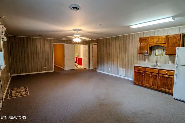 Tucked away on a private cul-de-sac in Cleveland, this 3 bedroom, 3 bathroom home offers space, privacy, and flexibility on a total of 2.82 acres, which includes a separately deeded lot next door. The setting provides a peaceful retreat while still being convenient to town. All bedrooms are located on the main level, creating an easy and functional layout. The main living area flows into a bright sunroom that opens directly onto the back deck, making it a great spot to enjoy the surrounding landscape or entertain guests. Downstairs, the partially finished basement includes a kitchenette, offering additional living space that could serve as a guest suite, recreation area, or home office setup. You will also find a dedicated storage room along with extra garage space, providing plenty of room for storage, tools, or recreational equipment. Outside, the property continues to impress with a barn/storage shed, giving you plenty of room for equipment, hobbies, or extra storage. With generous acreage, added flexibility from the additional lot, and a private setting, this property offers a unique opportunity to enjoy both comfort and room to grow.