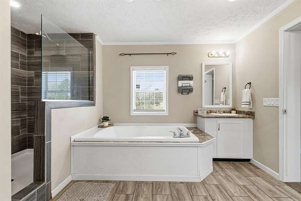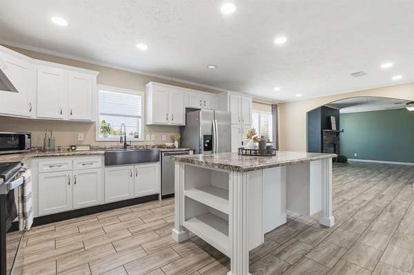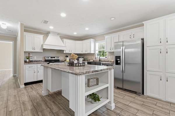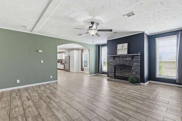 Welcome to your private slice of country paradise—like new, move-in ready, and sitting on 3.10 beautiful acres with a stocked pond! This spacious 4 bedroom, 3 bath home offers the perfect blend of comfort, style, and functionality. Step inside to an oversized living room featuring a cozy wood-burning fireplace that flows seamlessly into the large dining area—ideal for entertaining or everyday living. The kitchen is a showstopper with a large island, stainless steel appliances, and an impressive walk-in pantry with abundant storage. The primary suite is a true retreat, complete with a versatile sitting area perfect for a nursery, office, or reading nook. The en-suite bath features double vanities, an oversized soaking tub, and a custom walk-in shower. All guest bedrooms offer spacious closets, and each additional bathroom includes oversized tubs for added comfort. You’ll love the huge laundry room with plenty of storage space to keep everything organized. Outside, the property truly shines—enjoy peaceful views of the pond, wide open space to roam, and endless possibilities for outdoor living. A storage building adds even more convenience.