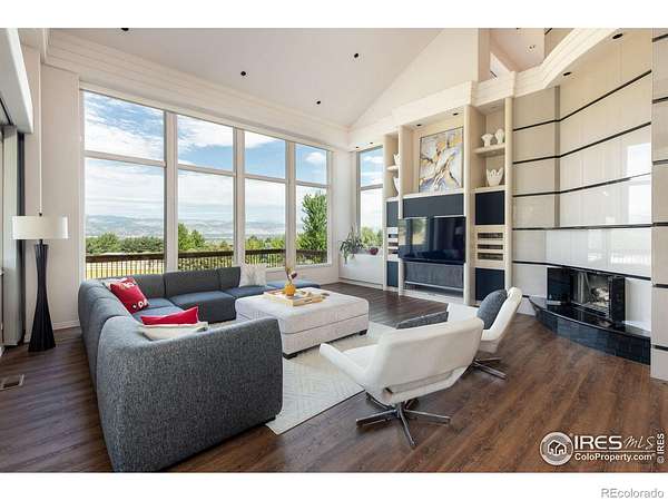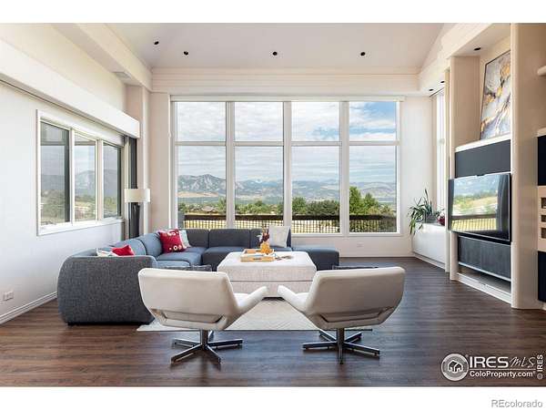 Perched above the hillside enclave of Paragon Estates, just eight miles from downtown Boulder, 160 Ponderosa Drive offers nearly eight acres of serene Colorado landscape with sweeping views of the Flatiron mountains, snowcapped peaks, Continental Divide, and Baseline Reservoir. This custom-built contemporary home, designed by Craig Bush, and built for $3.2 million in 1995, combines refined luxury with mid-century modern finishes. The grand foyer, with high ceilings, leads to meticulously crafted living spaces. A cherrywood study with crown molding and coffered ceilings provides an elegant workspace, while the formal dining room is perfect for hosting. The great room features 18-foot ceilings and a floor-to-ceiling granite fireplace, all framed by wall-to-wall windows that invite in natural light and stunning views. The chef's kitchen boasts Dacor and Bosch appliances, cozy breakfast nook to enjoy the magnificent views, a large center island, granite countertops, and abundant cabinetry, complemented by a wet bar and walk-in pantry. Upstairs, the primary suite offers a luxurious five-piece bath, a steam shower, and a 25-foot deep walk-in closet, with two additional en-suite bedrooms. The walk-out lower level includes a media room with a cherrywood bar, a guest suite, a crafts/laundry room, and access to the outdoor flagstone patio for entertaining. Modern amenities like a Lutron system for lighting, window treatments, sound and media, and a three-car heated garage enhance the luxury living experience. This expansive property allows for resort-style additions like a pool or tennis court. This estate balances modern amenities with natural beauty. Whether you're watching hawks and eagles from your living room or taking in the ever-changing mountain views, gorgeous sunsets, offering a serene yet connected lifestyle, just minutes from Boulder's vibrant culture, and only 25 minutes from downtown Denver.