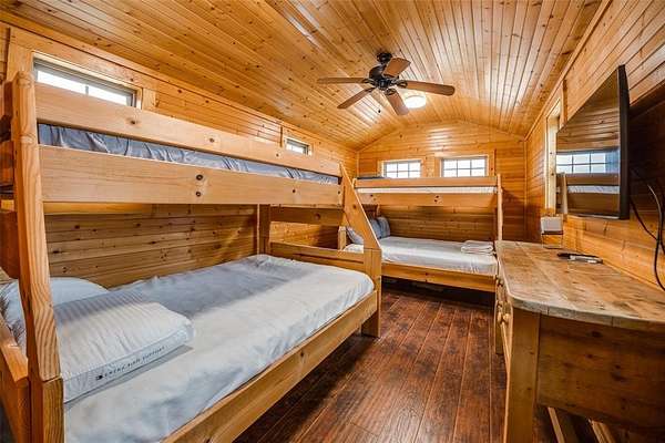 Barndominium: A versatile and spacious structure, perfect as a workshop, guest quarters, or storage. Has an upstairs bunk room with a window unit.
