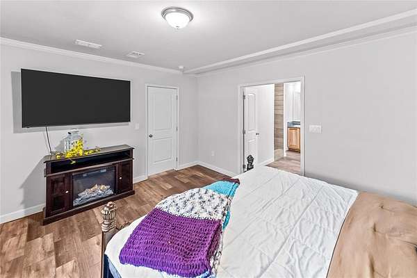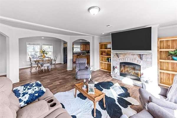 The upgrades list on this house is extensive! The home features upgraded 2x6 framing, tape-and-texture walls, a welcoming fireplace, upgraded appliances, and a durable metal roof. The open-concept floor plan is enhanced by a warm farmhouse aesthetic, creating an inviting space ideal for both everyday living and entertaining. The home also is under Home Guard transferable protection plan until 2030!