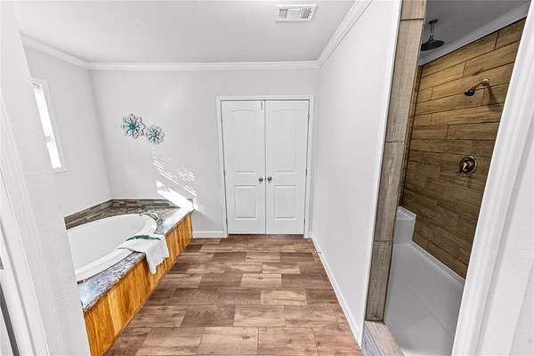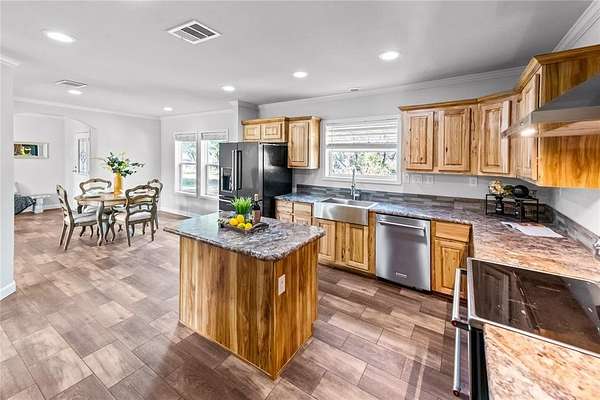 Outside, the property offers a beautiful balance of mature trees and open land, providing privacy while still enjoying a neighborhood setting. The acreage lends itself to a variety of use, whether outdoor entertaining, gardening, recreation, or simply enjoying the quiet surroundings—all just minutes from lake access. This is a rare opportunity to enjoy like-new construction, acreage, and lake proximity in one exceptional property.