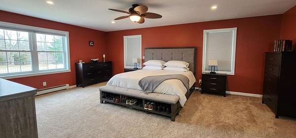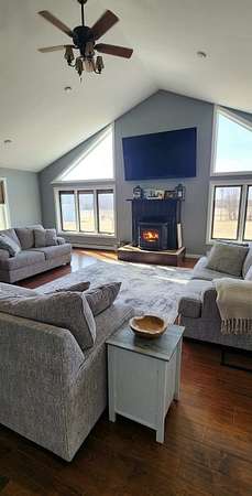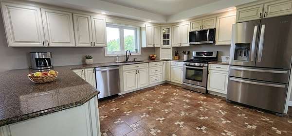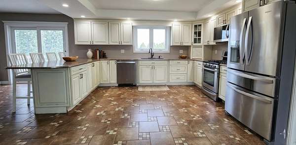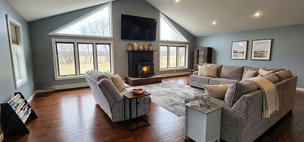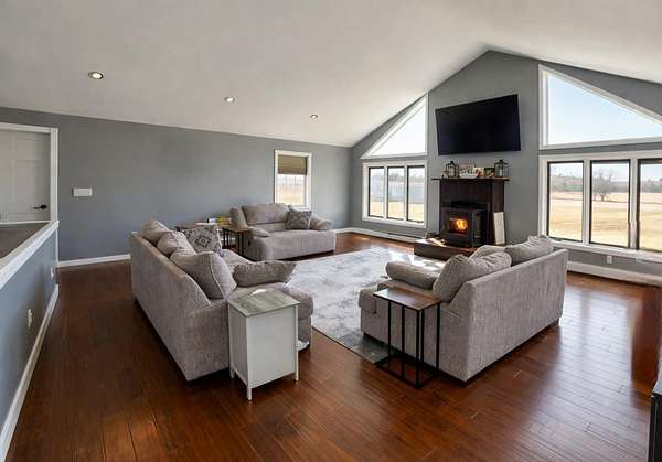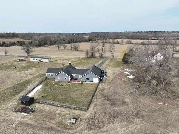 Discover this custom-built, stunning ranch home, constructed in 2012 and located in the desirable Madrid Waddington School District. Offering 3 bedrooms and 2 full bathrooms, this home combines modern comfort with peaceful country living. Step inside to a spacious eat-in kitchen featuring heated floors, quartz countertops, and stainless steel appliances—perfect for both everyday living and entertaining. The home boasts a huge living room with a cozy pellet stove, creating a warm and inviting atmosphere. The large primary suite includes a walk-in closet and a full bathroom, while two additional first-floor bedrooms also offer generously sized walk-in closets. The finished full basement heated with in-floor radiant heat has a large family room, an oversized utility room/workshop and two additional rooms, adding even more functional living space. This home is efficiently heated with a pellet-burning boiler system and is exceptionally well insulated for year-round comfort. The attached huge 32’ x 48’ garage has three overhead doors, ample storage, and currently accommodates the seller’s home gym with plenty of room to spare. The back yard is fenced in and has a large deck for entertaining. The front porch is also a good size and offers a view of the fields across the street and the wildlife who come to visit the apple tree out front. Conveniently located just minutes from Waddington, Lisbon, and Ogdensburg this property offers both privacy and accessibility. Enjoy the privacy of the serene setting, complete with beautiful countryside views. The garage is set up for in-floor heat BUT it is NOT connected a new owner can do that if desired. Appliances will convey All buyers MUST be pre-qualified prior to scheduling a showing Minimum 24-hour notice required for all showings. Don’t miss this opportunity to own a beautifully maintained modern home in a peaceful, private setting.