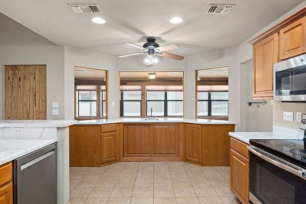 - Dishwasher, Electric Range, Electric Water Heater, Microwave, Refrigerator, Self Cleaning Oven