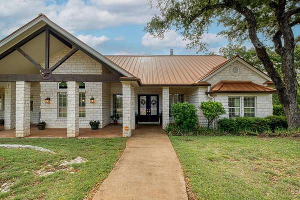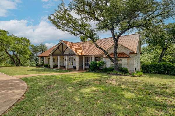 Welcome to your Hill Country haven--where luxury meets tranquility on over 11 private acres. This stunning 4,420 sq ft estate offers timeless Texas elegance with its metal roof, Austin stone exterior, and sprawling views of the surrounding landscape.