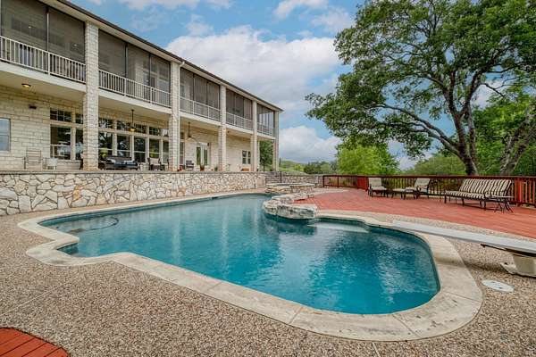 Step outside and you'll find the true magic of this property: a resort-style pool and spa, expansive deck, and screened-in porch that runs the length of the home--ideal for soaking in breathtaking Texas sunsets. The oversized garage/workshop is perfect for the hobbyist or weekend warrior, complete with golf cart access and storage for all your gear.