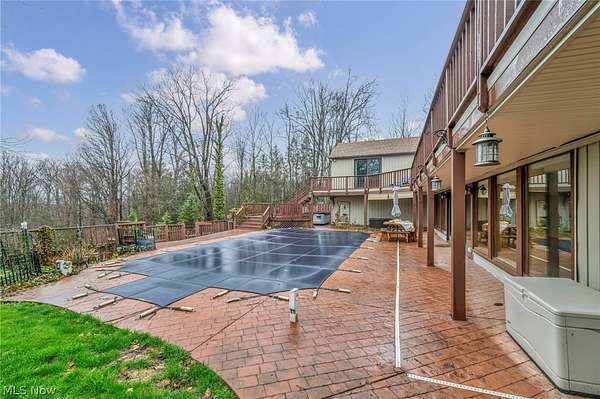 Welcome to your private retreat in the heart of Hinckley, offering space, privacy, and resort-style living on nearly 5 acres. This beautifully updated home is surrounded by mature trees and scenic views, yet just minutes from everyday conveniences. Step inside to a warm, light-filled interior designed for both comfortable living and entertaining. The home features updated Pella windows and patio doors, Hunter Douglas blinds, and a functional layout that flows seamlessly throughout. The kitchen includes a Whirlpool induction stove with dual oven, and all appliances are included for added convenience. Major mechanical updates provide peace of mind, including a Navien tankless water heater, full-house Generac generator with gas meter upgrade, water softener (2017), well pump (2012), and septic line replaced in 2018. Step outside to your own backyard oasis featuring a resort-style pool (rebuilt 2009) with new pump (2023), stamped concrete patio, and deck areas ideal for entertaining. Relax year-round in the hot tub while enjoying the peaceful wooded setting. The back deck was replaced in 2017. A 6-foot metal fence encloses approximately one acre with three gates, while the remaining acreage offers open space and privacy. Additional highlights include a gated entrance, newer driveway (2012), updated garage doors, gutter covers (2014), and Vermont Castings wood stove. Conveniently located near Hinckley Reservation, parks, dining, and with easy access to Interstate 71. Don't miss this rare opportunity to own a move-in-ready home with extensive updates on nearly 5 acres-schedule your private showing today.