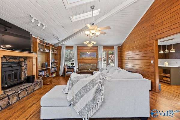 Welcome home to this well-maintained oasis situated on 1.58 acres! Tucked away at the end of a secluded cul-de-sac and just a couple of miles from the nearest boat launch, this property offers both privacy and convenience. Inside, you'll find fresh paint throughout, freshly stained kitchen cabinets, custom built-ins, and a cozy wood-burning fireplace. Skylights fill the home with natural light, and the primary bath features heated tile flooring for an added touch of comfort. Enjoy the outdoors year-round with two screened-in porches, plus a workshop outside for hobbies or extra storage. Schedule your showing today to experience this beautiful home for yourself!