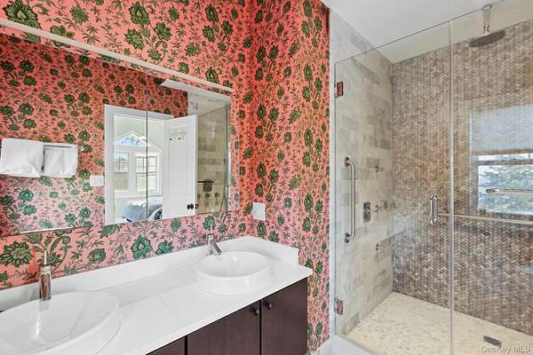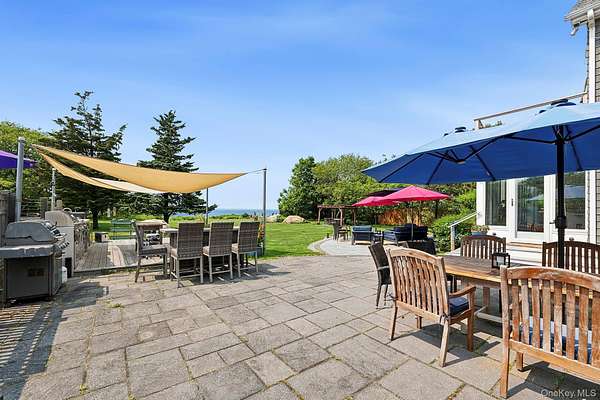 A breathtaking waterfront estate on Long Island Sound is being offered for the first time by its original owners. The coastal beauty of the North Fork stands out as one of the most sought-after and picturesque areas on the East End! Nestled on nearly 2 acres, this 4,500 sq. ft. residence showcases exceptional views and over 200 feet of private waterfront. The spacious open floor plan features a junior primary ensuite on the first floor, complete with a separate private entrance and direct access to the backyard. The gourmet kitchen inspires culinary creativity with custom cabinetry, high-end appliances, and ample space for entertaining. Experience the joy of al fresco dining along the breezeway that leads to the inviting patio. The living room and dining room, enhanced by a central fireplace, bask in natural light. Upstairs, the primary bedroom offers a tranquil retreat, complete with a balcony and an ensuite bathroom that reveals breathtaking views. An oversized lounge, also with a balcony, effortlessly connects to the kitchen below via a private staircase, creating an ideal space for entertaining guests above. Additional bedrooms, a bathroom, and a bonus space with a terrace provide privacy and comfort for visitors. The large art studio upstairs, overlooks the outdoor custom kitchen, and dining area, stunning pool, spa, and shower inviting inspiration. The yard's mature landscaping and expansive lawn create a welcoming atmosphere for unforgettable waterfront gatherings. This listing may include images that have been digitally altered or virtually staged. Original, unedited images are available upon request.