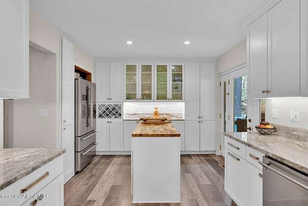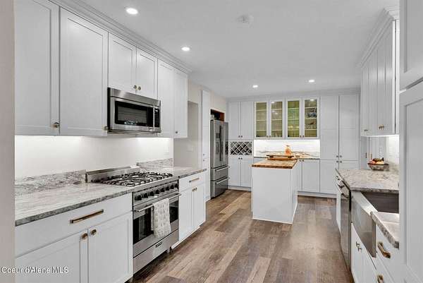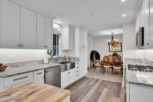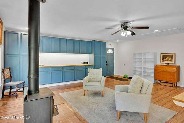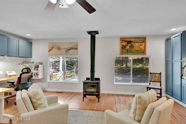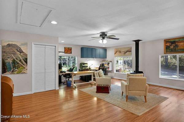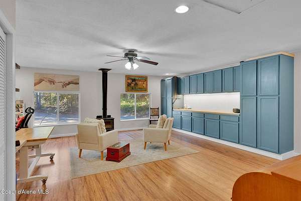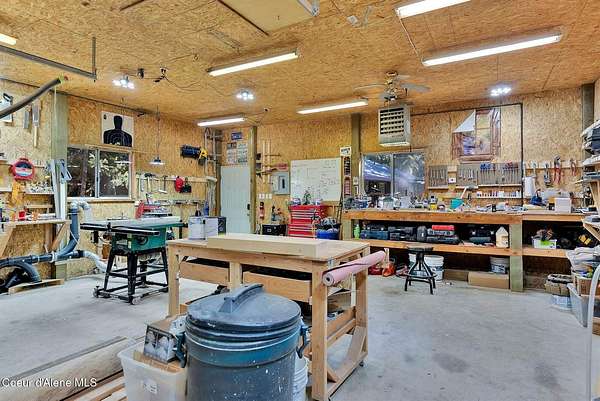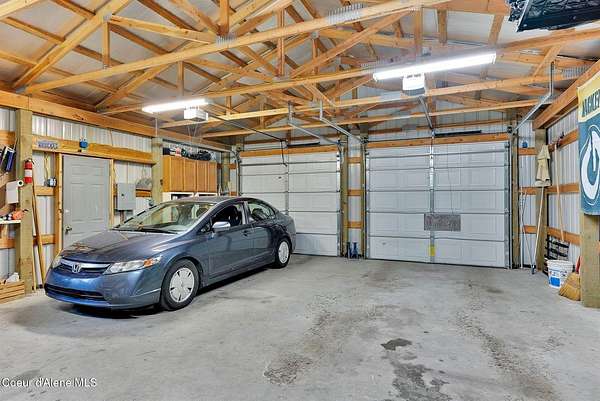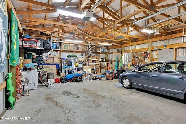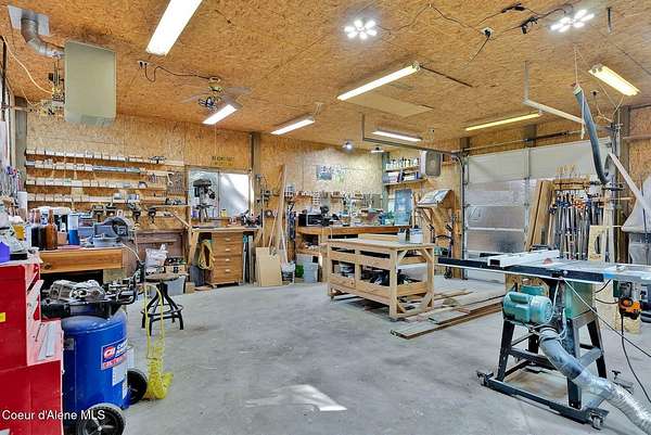 This 3 bed/2 bath, 1,924 sq ft home on 1.84 acres features a 24x48 shop, detached 2-car garage, and sits kitty-corner to state land just minutes from downtown Bonners Ferry. Walk through the front door into a spacious living room with vaulted tongue and groove ceilings and large windows. Fully remodeled kitchen features SMEG appliances, granite countertops, and gas range. Both bathrooms completely remodeled with walk-in showers. The original garage was converted into a large 500 sq ft family room with freestanding wood stove - a great flex space. Fully fenced yard with fire pit and walking paths around the acreage. The 24x48 shop offers a heated and insulated workshop with 100 amp/220V service plus a 12x36 lean-to for RV or boat storage with its own separate driveway. 14kW generator, natural gas forced air, and irrigation system. Country feel with downtown Bonners Ferry just 5-7 minutes away.