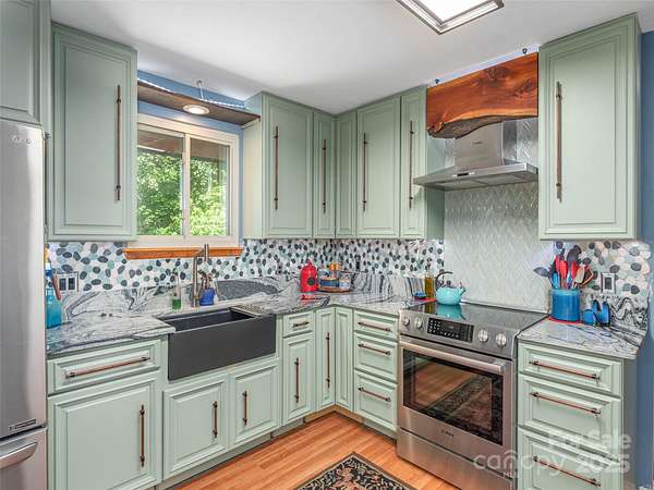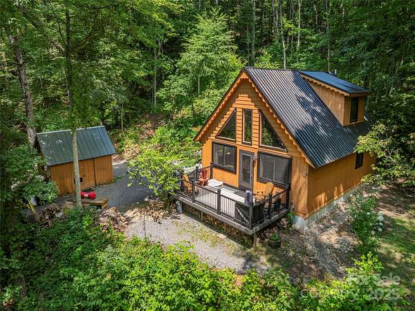 Escape to this charming 2BD/2BA mountain chalet, perfectly perched for long-range views and the peaceful sound of a nearby stream. Thoughtfully updated, the home features a renovated kitchen, main-level bedroom and bath, plus an airy loft with its own full bath-ideal for guests or a home office. Relax on the front porch tucked beneath the trees, offering privacy and a place to enjoy the cool mountain breeze. Recent improvements include central air and a metal roof, both installed in 2023, along with updated windows throughout most of the home. With space to add a garden or outdoor seating, this mountaintop retreat is ideal as a weekend escape or a full-time residence surrounded by nature.