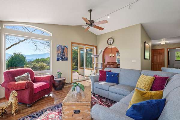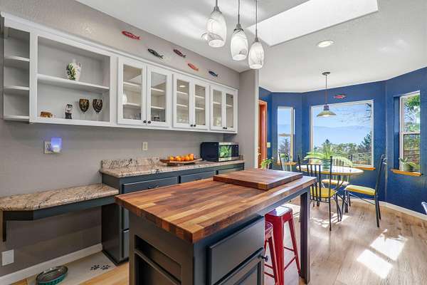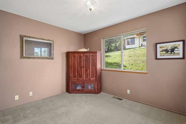 Welcome to 160 Wallace Ln! A stunning 2,233 sq ft home on 5 private acres with breathtaking views in every direction. Total finished space is 3,641 sq ft including the basement. This 3-bedroom, 4-bath property offers high-end interior finishes including granite countertops, butcher block island, gas range, quality flooring, and a spacious primary suite with large walk-in closet. Enjoy the new porch and Trex Juliet balcony off the primary bedroom, perfectly positioned to take in the scenery. A detached 426 sq ft office/studio features two office spaces, skylights, and a half bath--ideal for remote work or creative use. Additional features include an animal stall suitable for a mini-farm, workshop, fenced yard, oversized catio, and strong producing well. Updates include a new roof in 2023 and fire-resistant siding. Located just minutes from Cathedral Hills and within close proximity to Southern Oregon wineries, this property offers space, privacy, and lifestyle in one exceptional setting