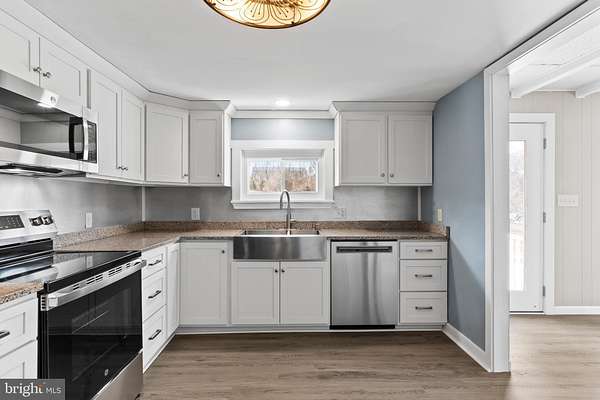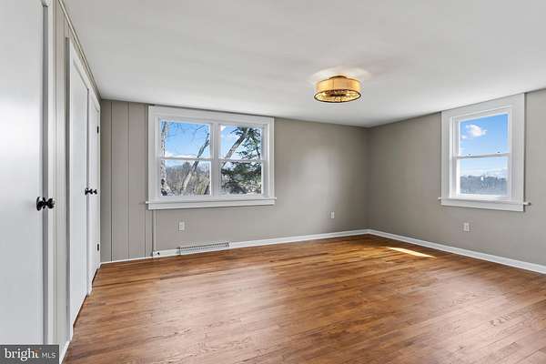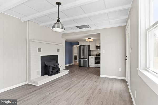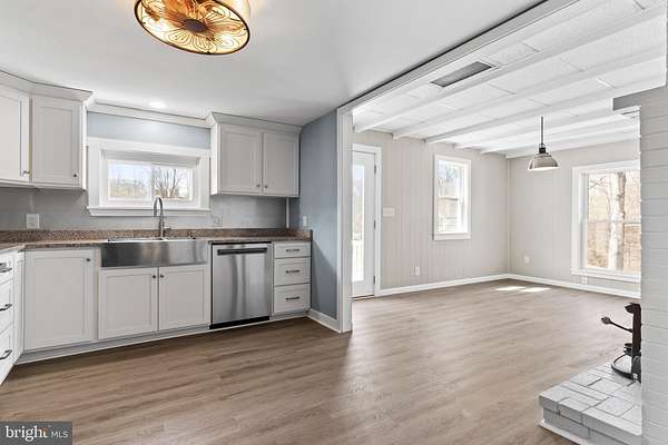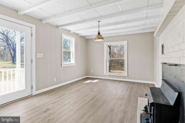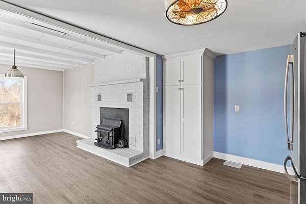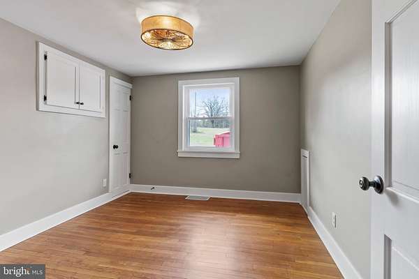 Set on 10.61 scenic, rolling acres in North Middleton Township, this beautifully renovated ranch home offers peaceful country living. Perched atop a hill, this home showcases a striking new black metal roof and a picturesque setting highlighted by sweeping valley views. Inside, the brand-new kitchen is a true centerpiece, featuring Mennonite-built custom cabinetry, granite countertops with a metal backsplash, a double stainless farmhouse sink, and all-new stainless steel appliances. The open-concept layout flows into the dining area, where a woodstove insert with a fan system distributes warmth throughout the home. The cozy living room showcases hardwood floors, custom built-ins, and a wood-burning fireplace, all complemented by large windows that frame the surrounding landscape. Hardwood flooring continues throughout the bedrooms, each offering ample closet space. Both bathrooms have been renovated, and new vinyl windows throughout enhance efficiency and comfort. A unique "smart door" off the kitchen provides adjustable privacy with switchable frosted or clear glass. The partially finished basement expands your living space with a recreation room featuring a woodstove, along with a potential fourth bedroom or home office. Outdoor amenities are equally impressive, including a smaller two-stall barn with a new roof and a pavilion outfitted with a new metal roof, ceiling, and outdoor fans-ideal for outdoor picnics and entertainment. Wildlife, including deer and turkeys, are frequent visitors, adding to the property's charm. Additional highlights include a new 200-amp electrical service, recently pumped septic system, and enrollment in the Clean & Green Program with affordable annual property taxes under $3,000. Turnkey homes on 10+ acres are a rare find-don't miss this opportunity!