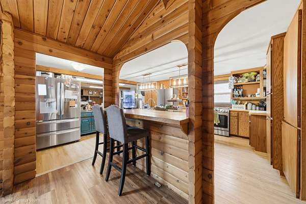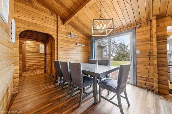Stunning Pan Abode cedar home on 4.67 acres, located on the edge of Davenport! This spacious property offers 5 bedrooms, 3 bathrooms, and multiple living areas, including a formal living room, and two additional living rooms-perfect for flexible living and entertaining. The oversized kitchen features a large 9' island, breakfast nook, and ample space for gatherings. The primary suite provides comfort and privacy, while two gas fireplaces add warmth and charm throughout the home. Central A/C and new vinyl windows for added efficiency and comfort. Step outside to your own private retreat with a fully fenced 15x35 in-ground pool and pool house-ideal for summer entertaining. The property also includes an oversized 2-car garage/shop and a barn, offering endless possibilities for hobbies, animals, or additional storage. Experience the best of both worlds, peaceful country living with the convenience of city amenities. A rare opportunity just outside Davenport!