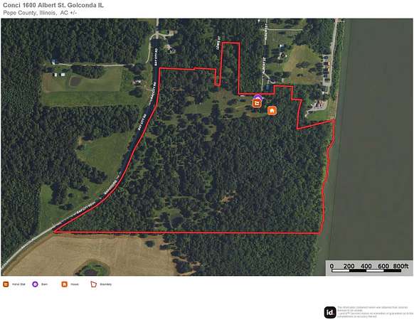 Welcome to Rivers Edge 97, a breathtaking 97-acre property in Pope County, IL, bordering the historic town of Golconda and offering unmatched natural beauty and outdoor opportunities. This diverse landscape features open woodland on the higher ground, once used for horses and cattle, and rolling hardwood timber that slopes down to a quarter-mile of serene Ohio River frontage. The property is a haven for wildlife, with abundant deer and turkey, making it a dream for hunters and nature enthusiasts.