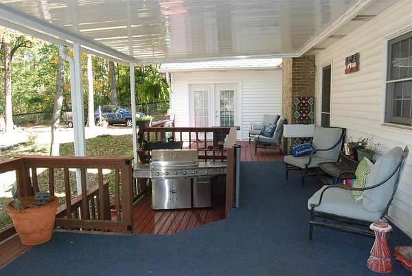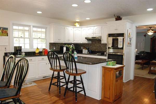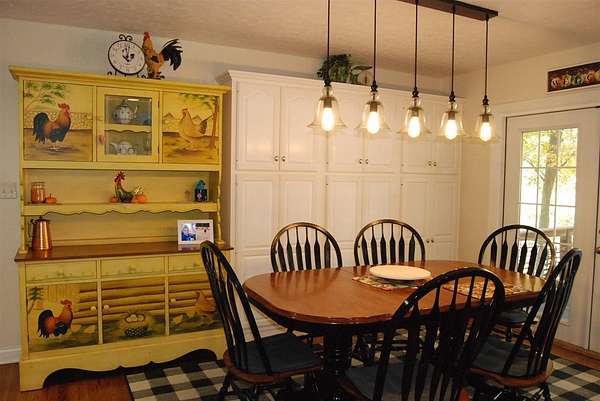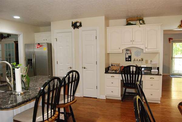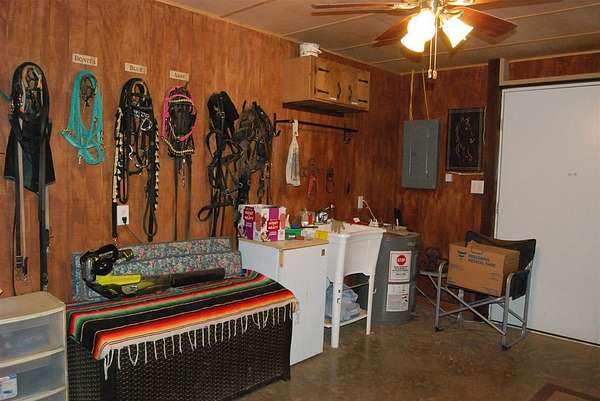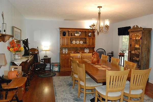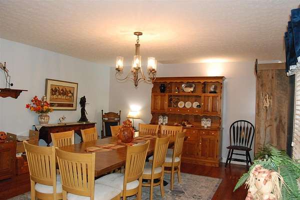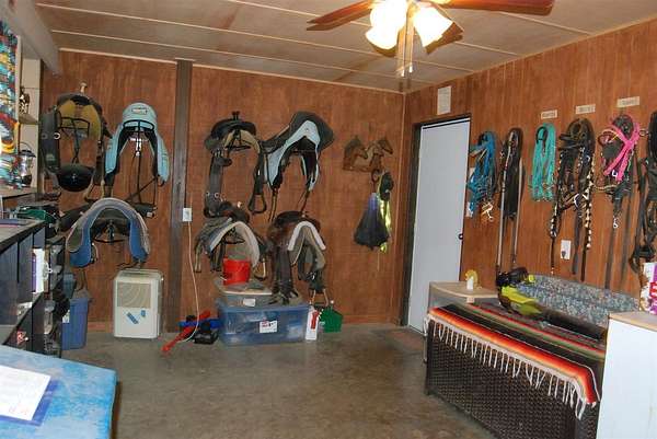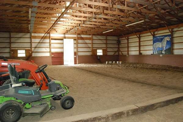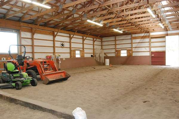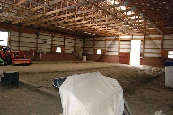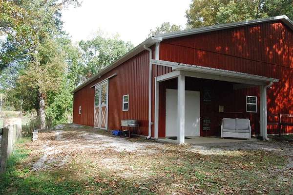 Horse lover's dream on 5 +/- acres! This one level home with a walkout basement is the perfect combination for those who train and ride horses and need guest quarters! Offering 2489 +/- sq ft on the main level with a split bedroom design, there are 3 bedrooms and two and a half baths, a large country eat-in kitchen with an island and breakfast bar, granite counters and tiled backsplash, two pantry closets, a wall of cabinet storage, a built-in desk, and appliances. Huge dining room for get togethers. The big living room has a gas log fireplace for cozy evenings. Spacious primary bedroom, and large bath with two vanities, a garden tub, a tiled walk-in shower, a linen closet and two walk-in closets! Bedrooms two and three share a jack and jill bath. Big utility room! Step outside onto the covered front porch to enjoy your morning cup of coffee! The huge rear deck covered deck is a great place for entertaining! Downstairs offers the guest quarters with two large rooms with closets, a kitchenette and second utility room plus a bathroom! There's a screened porch, too! The workshop offers electric, water, and a combination of concrete and earthen flooring for your specific needs. The 80x' 60' barn offers a 60' x 60' riding arena with two separate entry and exit sliding doors, 4 tongue and groove stalls, a tack room with water, and a reinforced roof with a stairway for additional storage. Fenced and cross fenced pastures! Don't miss this great opportunity in a convenient area!