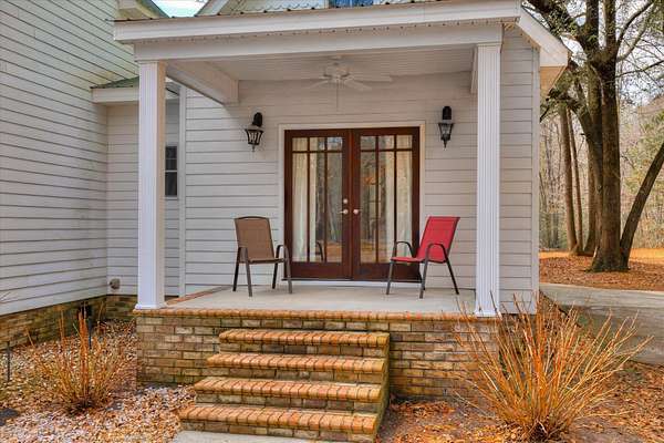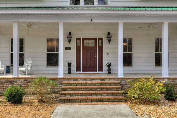Timeless Southern Living Cottage in a boutique equestrian community just a short drive to downtown Aiken. Set back in a private setting on 7.3 acres, this cherished property encompasses 2,653 square feet of refined living space. Enjoy the tastefully designed open concept living/dining/kitchen areas, complete with bamboo flooring throughout complemented by a beautiful gas fireplace. Kitchen is equipped with beautiful maple cabinetry, corian countertops and newer appliances, including a Sub-Zero refrigerator, two newer Fisher & Paykel dishwashers, a newer Dacor gas cooktop, and a brand-new KitchenAid microwave and wall oven. A powder room, laundry room, and beautiful primary suite, with separate rocking chair front porch access, complete the first floor. Two additional bedrooms with shared bath, along with plenty of storage can be found upstairs. From the kitchen, step out onto the screened-in porch, where a wood-burning fireplace enhances the outdoor ambiance. This area provides access to the charming guest suite with an additional bedroom and bathroom., offering dual entry points perfect for visitors or live-in family members. The guest suite offers new carpet, a spacious upstairs bedroom, a downstairs living area with a wet bar, mini fridge, and microwave all of which remain alongside a full-sized bathroom with a brand-new vanity and lighting, and a walk-in closet. Additional enhancements and features include a refreshing creek at the rear of the property, newer irrigation installed by Cold Creek Nursery, updated landscaping, a newly screened porch, and four HVAC systems (two installed in 2020, and 2021and one in 2026), Anderson Windows. The property also features a four-bay covered carport with the potential for power and water connections. Let this home be the catalyst to launch your dream equestrian haven in one of the South's best equestrian areas of Aiken, SC.