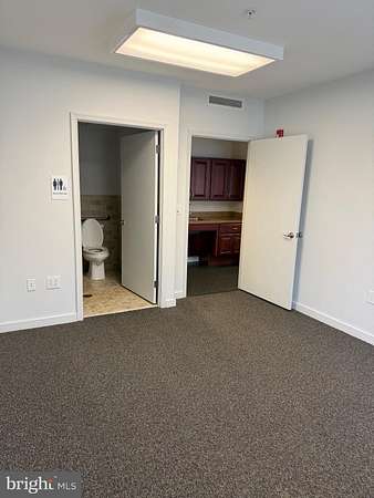 Office space available immediately! Bright and functional first-floor suite conveniently located just to the left of the main entrance. This private office features 2 separate rooms, a built-in kitchenette, and a private bathroom totaling almost 550 sq feet! Perfect for professionals seeking comfort and convenience in one turnkey space with all utilities included except phone/internet/cable.