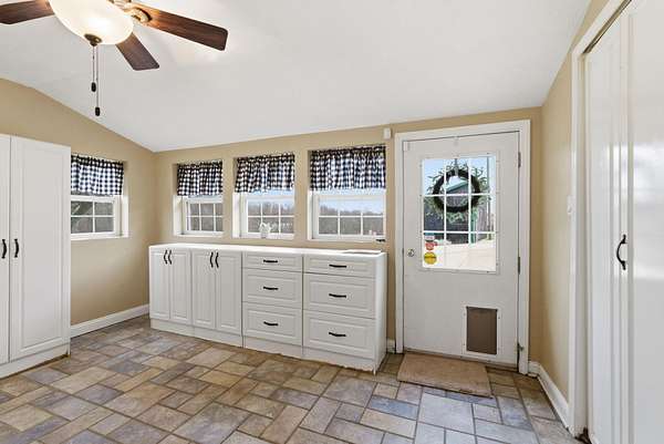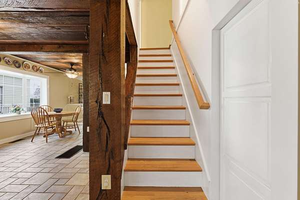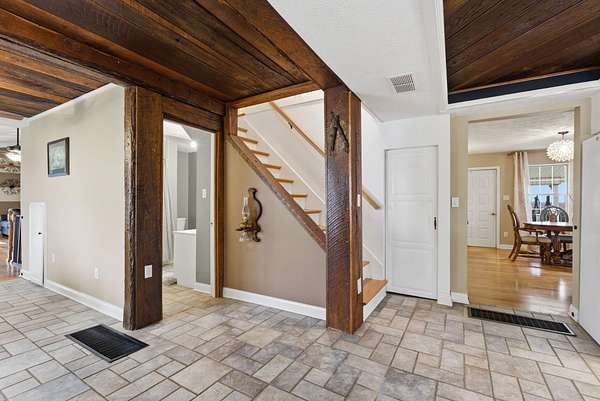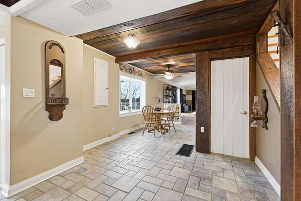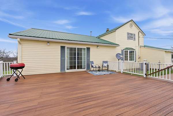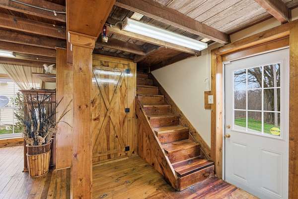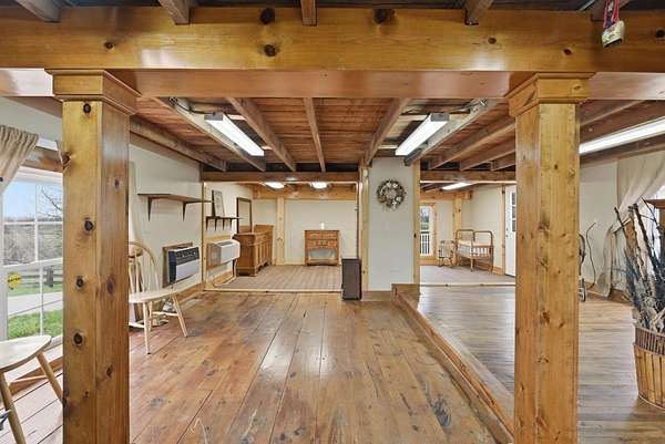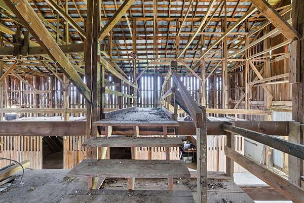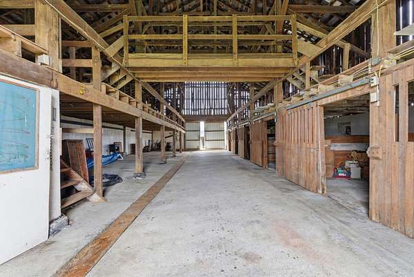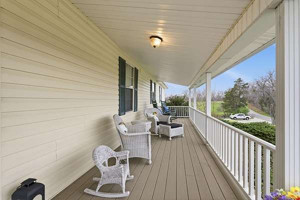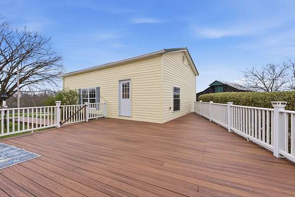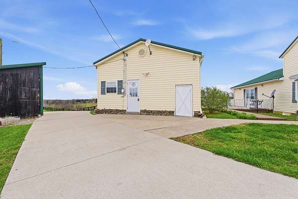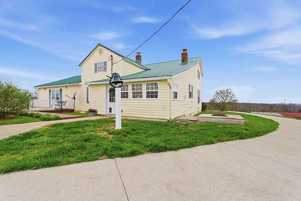 Spanning 49.96 acres, this estate's beauty is underscored by its gently rolling landscape and partial fencing, predominantly plank and woven wire. The main residence is replete with 4 bedrooms, 3 full bathrooms, and stunning wide hardwood plank flooring that transitions seamlessly into tile in areas. The wood-burning fireplace stands out as a cozy focal point. The interior plan highlights a formal dining room capable of serving as a secondary formal living space and a great room designed for family time. Below, a full basement houses the garage. A separate climate-controlled building houses a Mother-in-law suite or craft room replete with a full bathroom and loft connected to primary dwelling by an expansive Trex-style deck. This property features a garden tool shed, a large barn with stalls, a tack room, and hay storage on the upper level. Furthermore, two additional small barns are available, potentially serving as a machinery shed and run-in shed. Please note that this estate sale and is Being Sold As Is and prospective buyers are welcome to have inspections.