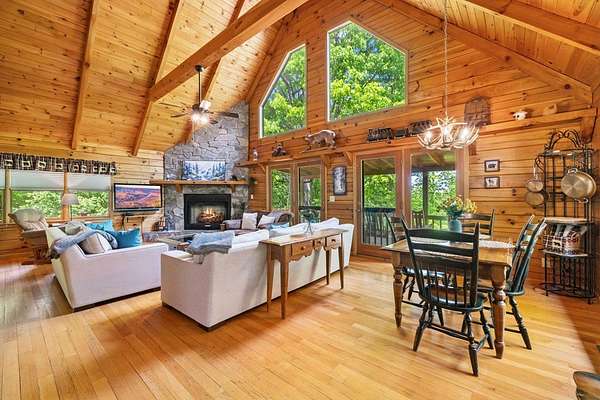 Welcome to your mountain retreat! Nestled on a sprawling 2.71-acre double lot in My Mountain Subdivision, this delightful cabin offers both the tranquility of nature and the comfort of modern living. Surrounded by mature vegetation, this is a private escape from the hustle and bustle of everyday life! Step inside to discover an open concept main level that seamlessly blends living, dining, and kitchen spaces, perfect for hosting family and friends. Extend your gatherings to the screened-in deck, where you can enjoy the fresh mountain air. Venture to the upper level to find a spacious loft with a full bathroom and a private balcony—your perfect spot for enjoying morning coffee while taking in the serene surroundings. The terrace level is an entertainer's paradise, featuring a wet bar, secondary living area, and a game room space that promises endless fun and relaxation. Currently operating as a vacation rental, this home provides a fantastic investment opportunity, yet it is equally suited for those seeking a full-time residence in the serene mountains of North Georgia. Don't miss the chance to own this exquisite cabin, where every detail invites you to unwind and enjoy the best of mountain living.