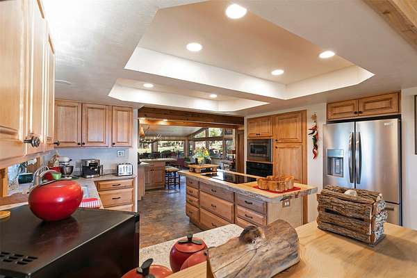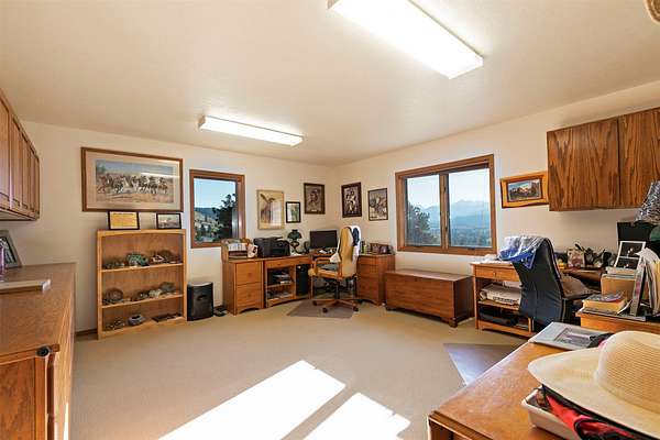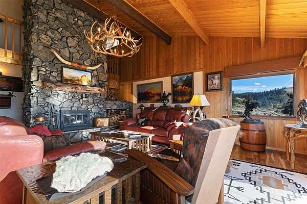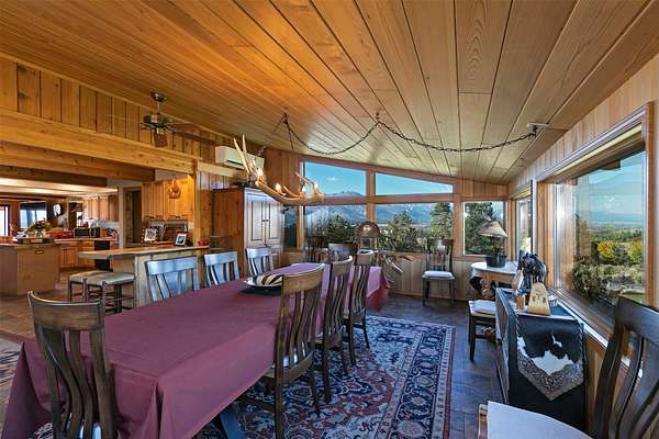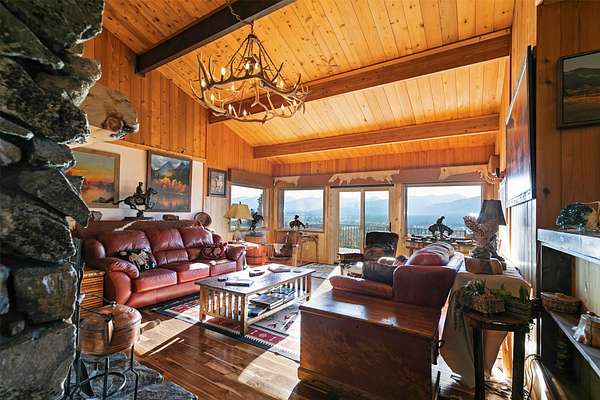 Perched high above the valley, this extraordinary property offers a world of its own-where sweeping vistas of the Bitterroot and Sapphire Mountains, the Bitterroot River, and the valley floor unfold in every direction. Spanning 24.67 acres, the property affords exceptional privacy and a rare sense of serene seclusion. The residence has been masterfully reimagined through a comprehensive renovation, featuring a refined chef's kitchen, a spa-inspired primary en-suite bath, new flooring throughout the home, and a new roof. Thoughtful enhancements continue outdoors with an expansive deck designed for elevated entertaining, beautifully refreshed landscaping with an inviting firepit, and a three-car garage that is insulated, heated and further enhanced with two additional storage rooms and a distinctive cupola. Comfort is ensured year-round with electric baseboard heat, a dramatic fireplace, two Rinnai heaters, updated wall heaters in the bathrooms, and a mini-split system for air conditioning. With 5,106 square feet of living space, the home is designed to capture breathtaking views from nearly every room, while offering seamless flow for entertaining including a transitional gathering space between the kitchen and dining area. The main-level primary suite provides a private retreat with en-suite amenities, while the finished basement-with its own exterior entrance-offers flexible accommodations for guests or extended family living. The upper level features two guest bedrooms each with a stunning view and its own bath. The home is equipped with an engineered lift for added convenience. Set along one of the valley's most coveted view corridors, the property remains largely in its natural state, creating an ideal habitat for wildlife. A deeded walking path provides access to the Bitterroot River, while the BRID ditch traverses the land, delivering irrigation water for the underground system-enhancing both the beauty and functionality of this remarkable offering.