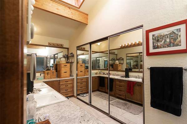 - Elevator, Fireplace, Main Level Primary, Vaulted Ceilings, Walk In Closets