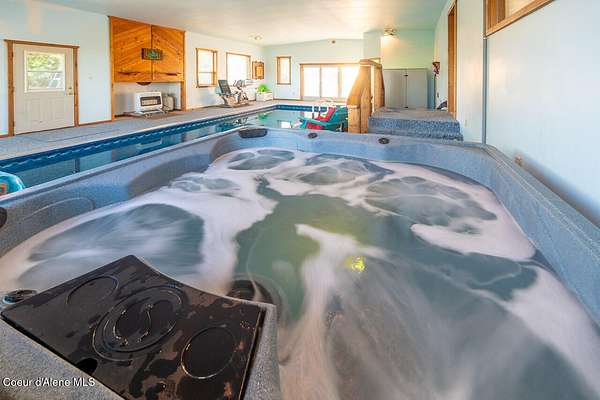MOUNTAIN TOP RETREAT! Enjoy absolute PEACE, QUIET, PRIVACY and MT. & LAKE VIEWS on this 26+ treed acres bordering timber company land in this lovely 4 bedroom, 5 bath 6464 sq. ft. home. The home boasts new roof, new siding, new windows, HUGE new deck to capture those amazing mountain and valley VIEWS, new flooring, expanded and updated kitchen and new 28 x 40 shop. No cramped spaces here with extra large rooms, lots and lots of built in cabinetry and storage. Central heating provided by propane gas furnace or wood furnace, cozy wood fireplace and a back-up whole house generator. BONUS: Expansive indoor pool room with lap pool complete with new pool liner and heater. NEW HOT TUB, too!