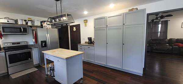 - Ceiling Fan(s), Eat-In Kitchen, Primary Downstairs, Walk-In Closet(s)