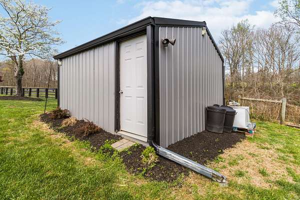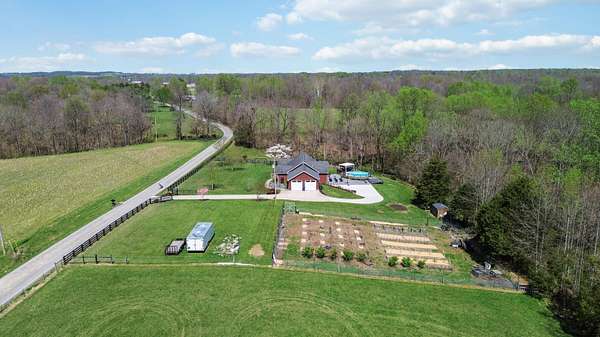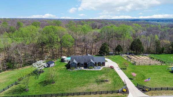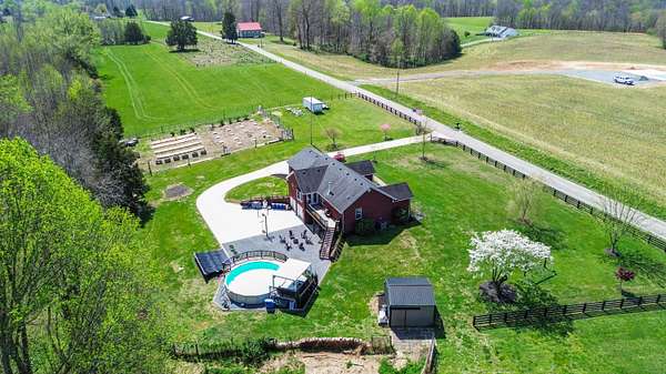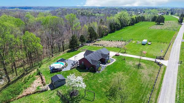 Welcome to 1600 Wooleyville Road, Campbellsville, KY - Where Modern Living Meets Sustainable Serenity Tucked away just minutes from town, this beautifully updated 4-bedroom, 3-bathroom home offers a rare blend of modern comfort and self-sufficient living. Set on a serene and private property, it provides the perfect balance of relaxation, functionality, and intentional living. Step outside and discover a space designed to elevate everyday life. The solar-heated, chlorine-free swimming pool, added in 2024, uses thermal solar panels to extend your swim season while keeping maintenance minimal and eco-friendly. Nearby, a Mirador aluminum pergola with an adjustable louvered roof and shade screen creates a comfortable outdoor living area in any weather. The expansive, fully enclosed organic garden spans over 7,000 square feet and is already thriving with elderberries, blueberries, medicinal herbs, and a variety of edible plants, with ample space to expand or add a chicken coop. Beyond the garden, the wooded rear of the property invites local wildlife, offering private hunting opportunities and a daily connection to nature. The fully fenced property with an automatic gate provides both security and flexibility for pets, livestock, or hobby farming. Inside, the home has been thoughtfully updated with high-end finishes and a focus on healthy living. The modern kitchen, completed in 2022, features Frigidaire Gallery stainless steel appliances, a 5-burner LP cooktop, and custom cabinetry designed for both beauty and function. The finished basement adds valuable living space with a fourth bedroom, full bathroom, and egress window, making it ideal for guests or extended family. Bathrooms have been stylishly remodeled with Kohler fixtures, quartz countertops, and updated tilework, while the home's premium flooring includes hand-scraped oak hardwood and OEKO-TEX certified low-VOC carpeting. Throughout the home, VOC-free paint enhances indoor air quality, and custom closet systems provide efficient organization. Major system updates ensure comfort and peace of mind, including a new HVAC system and water heater installed between 2024 and 2025. A whole-home water filtration system, added in 2022, further supports clean and healthy living. The property is also equipped with a propane line and transfer switch for generator backup, along with a high-efficiency wood-burning stove installed in 2025 that includes a cooking surface. A hardwired security system adds an extra layer of protection. For those needing space to work, store, or create, the property offers a total of four garage bays with five stalls, complete with hot and cold water hookups, drainage, a sprinkler system, and 220-volt power-ideal for a workshop, car enthusiast, or equipment storage. A newly added lower-level concrete driveway and pad provide additional room for projects, recreation, or parking. Located just 15 minutes from Green River State Park and within easy reach of the Kentucky Bourbon Trail, the home also offers convenient access to Louisville and Lexington in about an hour and a half, and Nashville in approximately two and a half hours. This property presents a unique opportunity to embrace a more sustainable lifestyle without sacrificing modern amenities. Whether you're gardening, entertaining, or simply enjoying the quiet beauty of your surroundings, this home delivers a lifestyle that is both comfortable and inspiring.