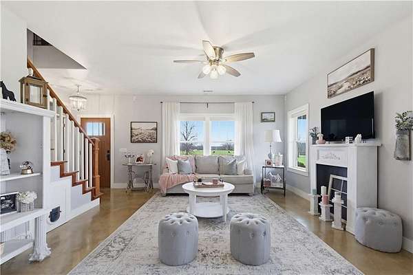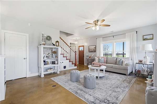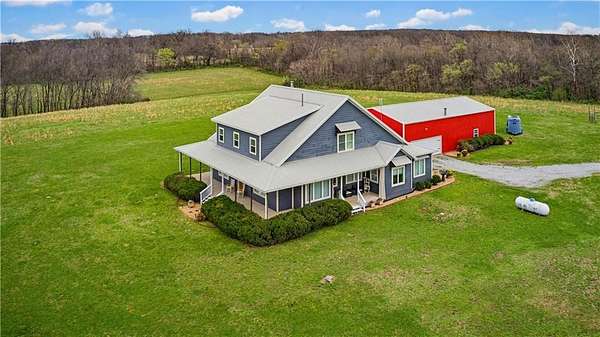 Tucked into the countryside of Gentry, this property offers space and privacy rare in NW Arkansas. Set on approximately 20 acres, it blends rural living with access to major employment centers, amenities, and XNA. The home spans 3,886 sqft with generous living spaces for everyday comfort and entertaining. Large windows bring in natural light and frame views of the surrounding pasture and mature trees. The land includes a pond, open acreage for recreation or animals, and multiple outbuildings that add flexibility. A large insulated shop with 50 amp/250 volt RV or generator capability provides ample room for projects, storage, or equipment, while the classic barn adds character and functional agricultural or hobby space. Additional highlights include a central vacuum system, tankless water heater, a pantry that doubles as a structural safe room and tornado shelter, a fully owned 500-gallon propane tank, and a pool-ready backyard. Ideal for a private homestead, hobby farm, or enjoying NWA.