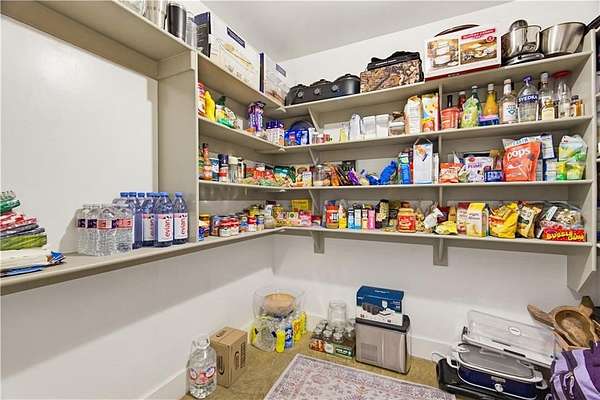 - Attic Storage, Blinds, Built-Ins, Ceiling Fans, Central Vacuum, Drapes, Eat-in-Kitchen, Granite Counters, Pantry, Smoke Detector, Split Floor Plan, Walk-In Closets, Woodstove