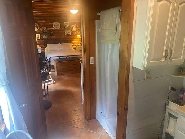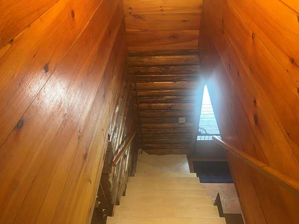 - Beamed Ceilings, Ceiling Fan(s), Entrance Foyer, Kitchen Island, Primary Downstairs, Track Lighting, Vaulted Ceiling(s)