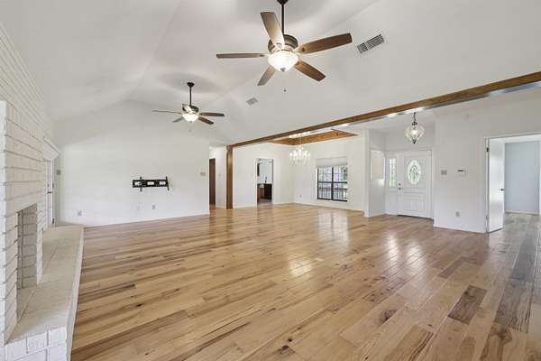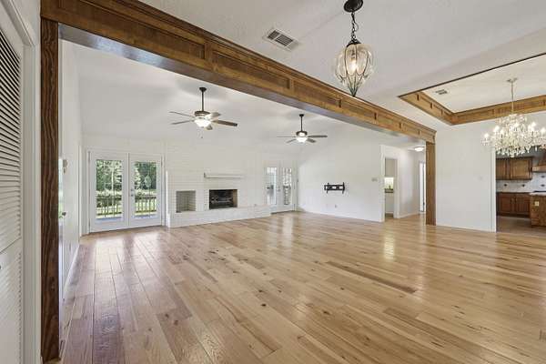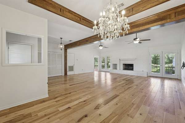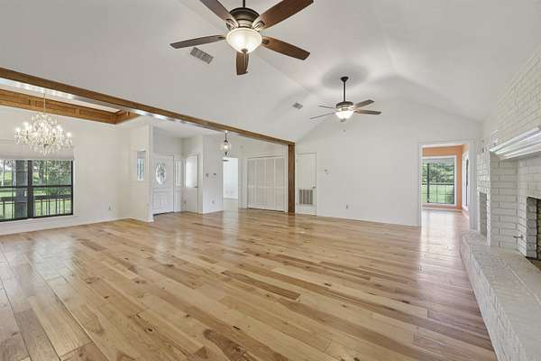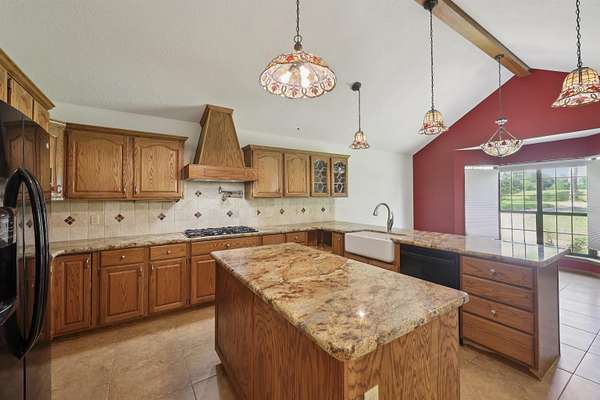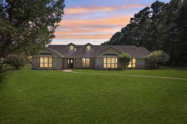 Experience the ultimate in country living with this beautiful single story brick home set on 13 unrestricted acres. With 4 spacious bedrooms & 3 bathrooms spread across 2,538 sqft and whole home generator, this property is designed for both comfort & style. The primary retreat features a large en-suite bath complete with a walk-in shower, soaking tub, & a generous walk-in closet. Enjoy cozy evenings by the w/b fireplace in the living room, & prepare culinary delights in the gourmet kitchen with vaulted ceilings. There's a breakfast area for casual meals as well as a formal dining for special gatherings. The property also boasts a guest home, offering unlimited possibilities for guests, in-laws, or hobbies. With a 3-car attached garage plus a 5-car detached carport & stained glass workshop, there is ample space for vehicles, projects, and storage. Acreage features a pond for livestock! Don't miss your chance to own this exceptional home with endless opportunities in a serene setting