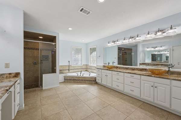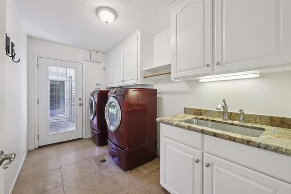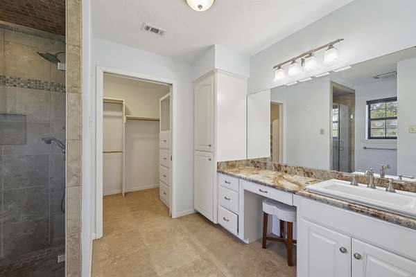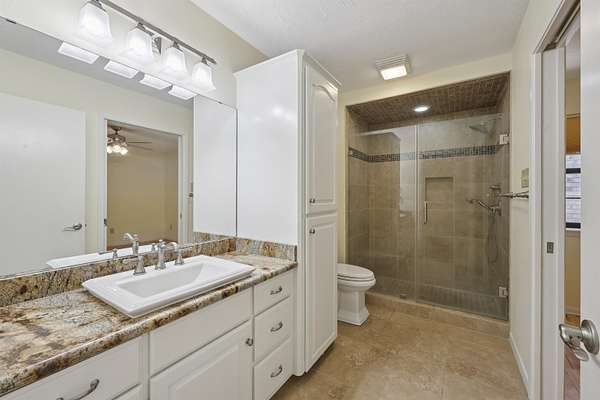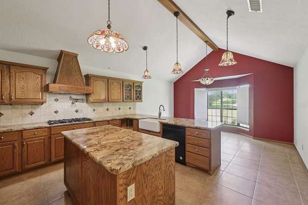 - Ceiling Fan(s), Cook Top, Granite Counter Tops, Inside Utility Room, Island Work Center, Primary Bedroom Down, Sheetrock, Tile Floors, Vent Fan