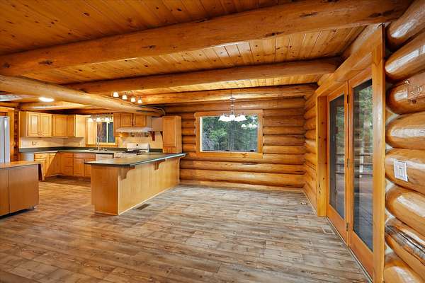 Escape to your own private Montana retreat at this stunning log home on 9.12 wooded acres, perfectly nestled among the pines and bordering Forest Service land for endless recreation and privacy. The home features a three-story river rock fireplace as its centerpiece, creating a warm and inviting great room that perfectly complements the rustic log construction. Enjoy peaceful mornings and golden-hour evenings from the wrap-around porch, where you can take in the abundance of wildlife and tranquil forest views. Inside, you'll find three bedrooms, two bathrooms, and a partially finished walkout basement that offers potential for additional living space or a guest suite. The recently remodeled bathroom brings a touch of modern comfort to this timeless mountain home. Designed for year-round comfort, the property includes forced heating and air conditioning, two natural springs, a private well, and a whole-home propane generator ensuring reliability in every season. A large lined pond adds to the picturesque landscape and provides a serene setting for relaxation or recreation. The 40x40 oversized shop is ideal for storing vehicles, equipment, or outdoor toys-perfect for those who love to explore, hunt, or work on projects. Whether you're seeking a full-time residence, a vacation getaway, or an income property, this Rexford gem offers the true Montana lifestyle-seclusion, wildlife, and unmatched natural beauty-all just a short drive from Lake Koocanusa and the charming town of Eureka.