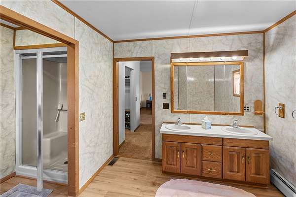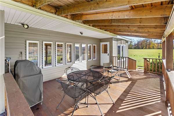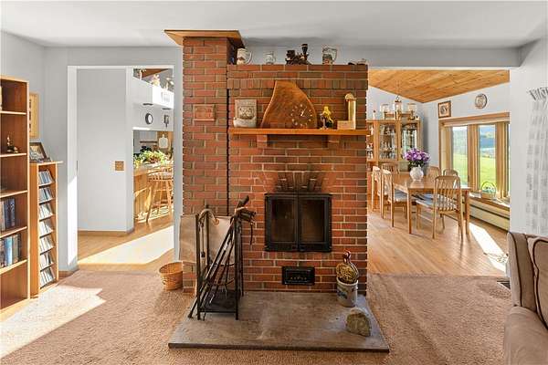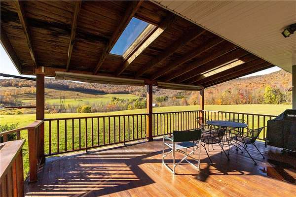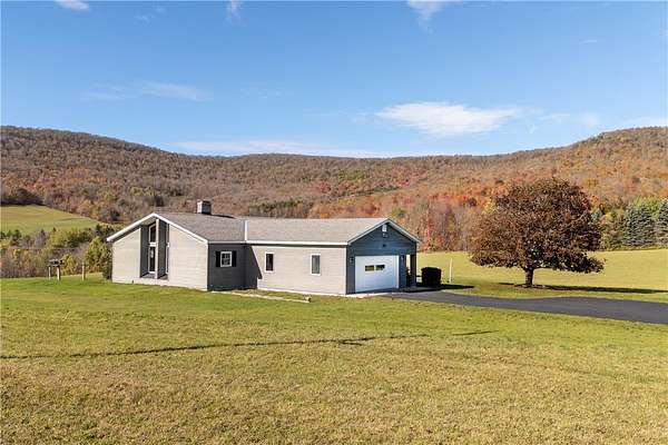 Impeccably maintained and thoughtfully designed, this architect-crafted 1985 ranch sits privately on 10.75 wooded acres, set back from a town-maintained road for an estate-like sense of seclusion. Turn-key and built with quality throughout, the home offers 1,680 sq. ft. on the main level plus an additional 1,680 sq. ft. of fully finished walkout basement-providing generous space for comfortable living, entertaining, and hobbies in the heart of the Catskills. The open-concept living, dining, and kitchen area is bathed in natural light from expansive windows framing sweeping mountain views. A striking brick hearth with a Norway wood stove anchors the living room, creating a warm, inviting centerpiece. The kitchen features a dishwasher, electric range, garbage disposal, luxury vinyl flooring, and a butler's pantry with sink and storage. The main level includes three bedrooms and two full baths-one with a jetted tub and another with a walk-in shower. Additional features include wood double hung thermal windows, three-zone hot water baseboard heat, 500-gallon oil tank, generator hookup, and sediment water filter. The finished walkout basement adds another level of flexible space with two heat sources-a fireplace/stove and an oil-fired ceiling-mounted heater-plus enclosed storage beneath the rear mahogany deck. Lovingly maintained by its original owner and never before offered for sale, this home also includes an attached two-car garage, asphalt driveway, and ample parking. Ideally located near popular Catskill attractions-minutes to Hobart Book Village, the Catskill Scenic Trail, and close to top ski resorts including Plattekill, Belleayre, Hunter, and Windham Mountains. A rare combination of craftsmanship, privacy, and mountain beauty-move right in and make it your Catskills retreat. Call for your private tour today.