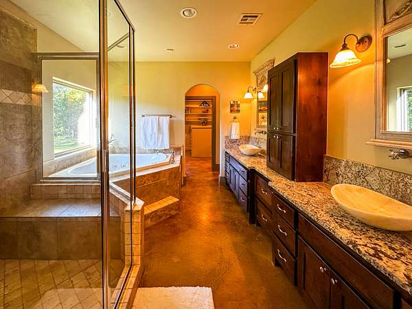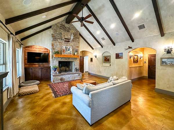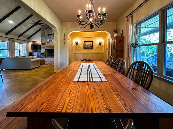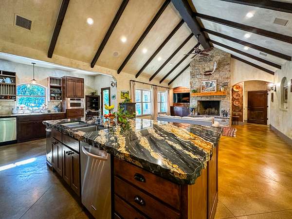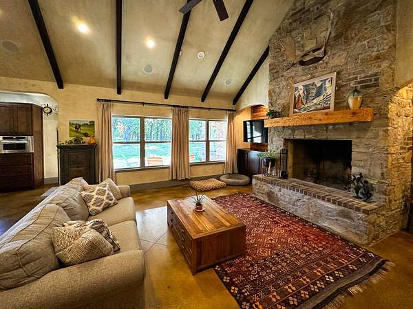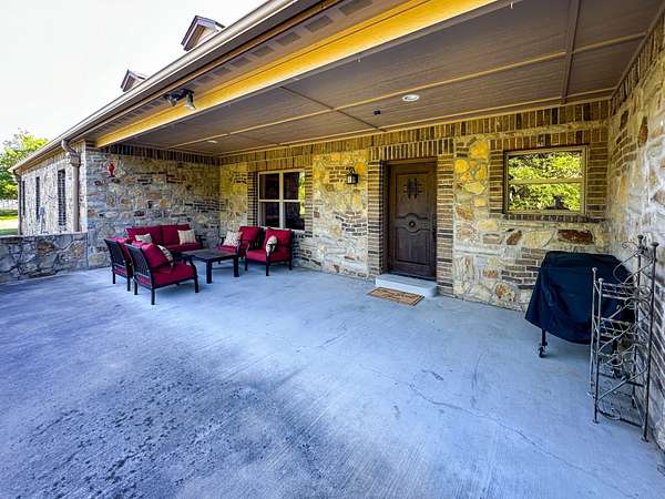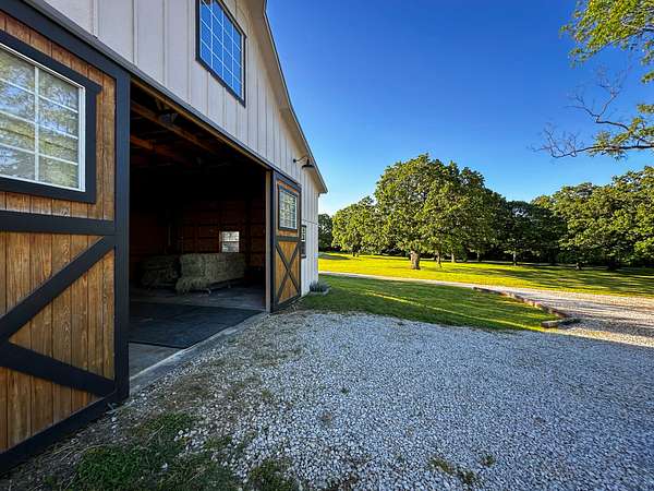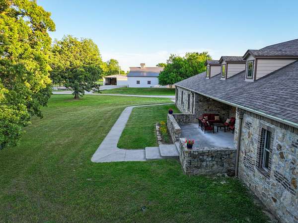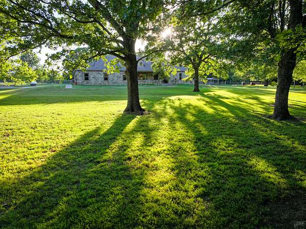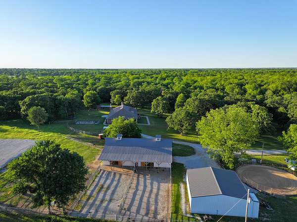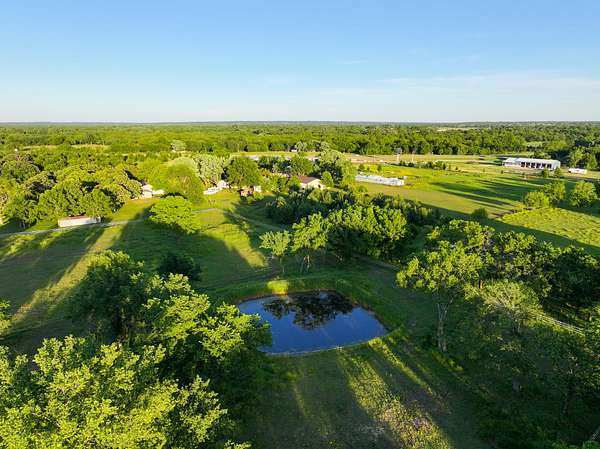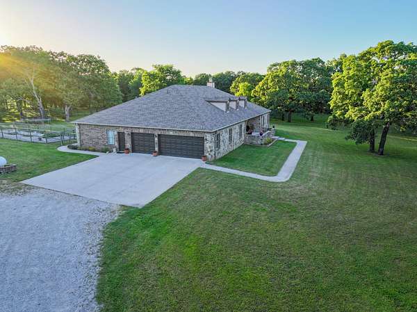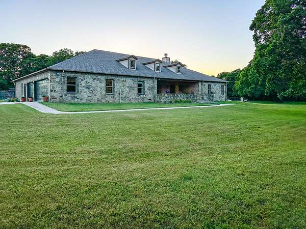 Welcome to the Horsepen Creek Ranch, a private +/- 25 acre retreat just +/- 2.5 miles northeast of Collinsville, Oklahoma! Located in sought-after Tulsa County, this turnkey ranch blends upscale country living with premium equestrian and recreational amenities; all behind a remote-controlled gated entry. At the heart of the property sits a spacious 3,325 sq ft single story home, thoughtfully laid out with an open-concept floor plan perfect for entertaining and everyday comfort. The kitchen is a showpiece, featuring granite countertops, a gas range with vent hood, custom cabinetry, and an oversized walk-in pantry with plenty of built-in storage. Just off the kitchen, the dining area flows effortlessly into a cozy living room anchored by a floor-to-ceiling stone fireplace, creating a warm, inviting atmosphere. The primary suite offers generous space and privacy, with an oversized bedroom, luxurious bathroom, dual vanities, a jetted tub, walk-in shower, and a huge master closet with a built-in safe room and hidden gun safe. The home includes 4 bedrooms and 3 bathrooms in total, with ample storage, a central laundry area, and well-appointed guest rooms. For equestrian enthusiasts, the property includes a 40x70 horse barn with 5 custom stalls, water and electric, and a climate-controlled tack room (mini split), and a half bath. Nearby is a 40x40 steel-frame shop with a concrete floor and two 20x40 bays. One is insulated and ideal for equipment storage, workspace, and tools. The other is ideal for parking vehicles and storing hay. The grounds are fully set up for horse training and recreational usage. There is a 100x200 arena pad leveled with 150 loads of dirt, a 6 inch aggregate base and topped with screenings, just waiting for you to apply the finishing touch. There is also a round pen, fenced pasture, woods and trails for riding or hiking. Soak in the natural beauty along Horsepen Creek along the northern boundary, which offers deer hunting and creekside fishing opportunities. On the property also sits a Generac that will power the barn and the house, if needed. This property is conveniently located +/- 8 minutes from 4 grocery stores, +/- 20 minutes from the Tulsa International Airport, +/- 30 minutes from downtown Tulsa, +/- 33 miles from Bartlesville, Oklahoma, and only +/- 40 miles from the Kansas state line. Don't miss this chance to own your one-of-a-kind luxury ranch in Oklahoma. All showings are by appointment only. If you would like more information or would like to schedule a private viewing please contact Chuck Bellatti at (918) 859-2412 .