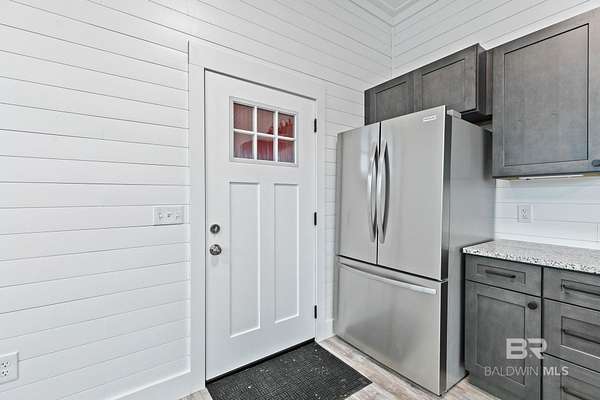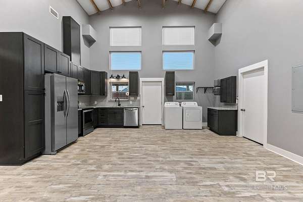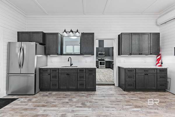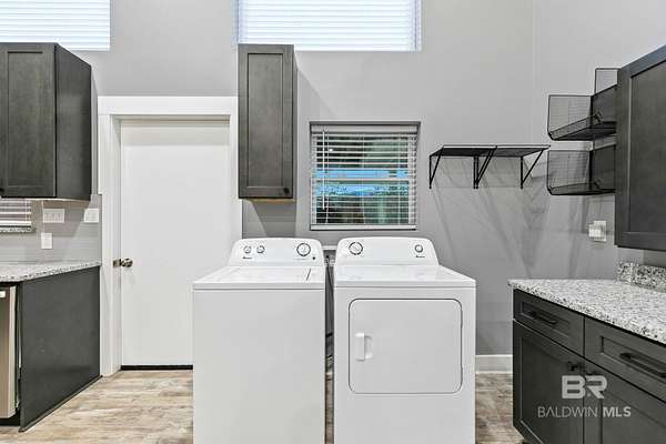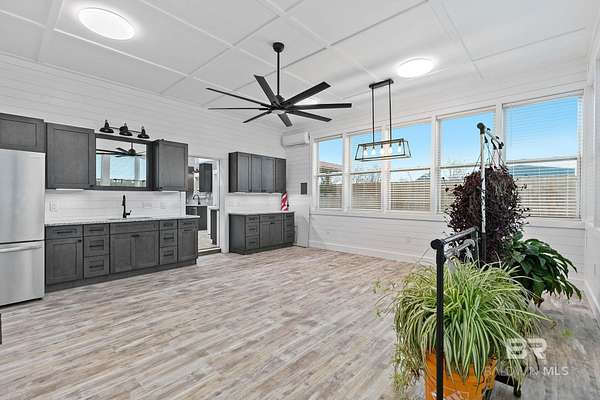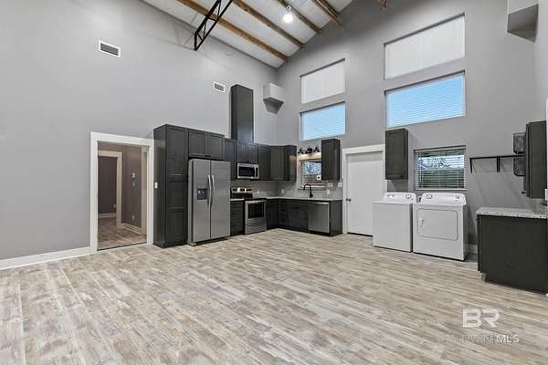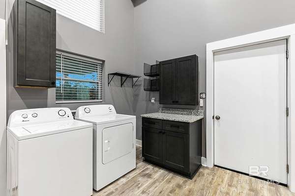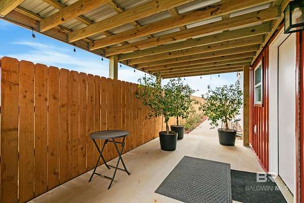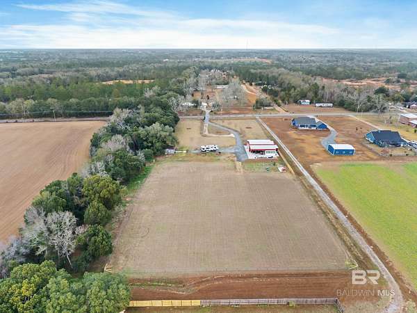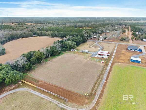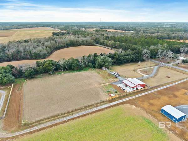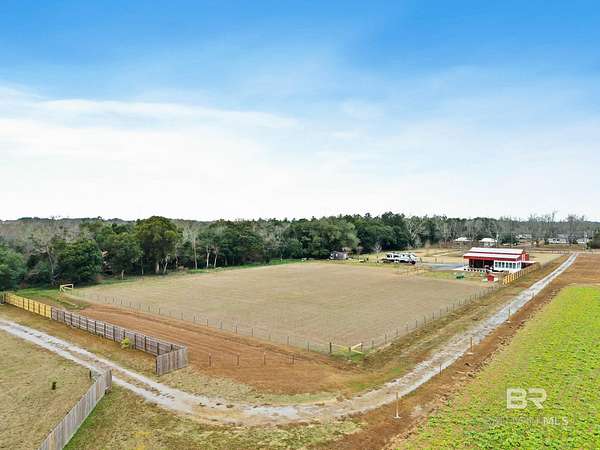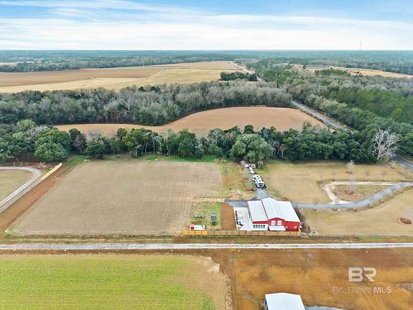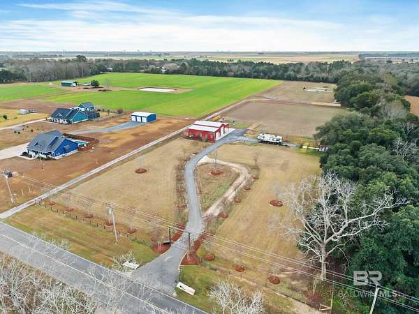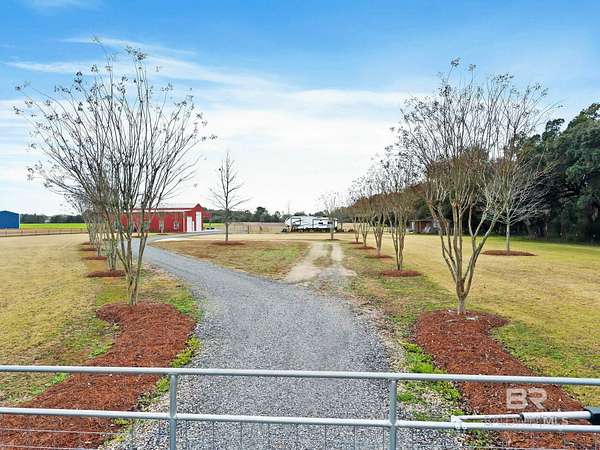 Welcome to a country slice of paradise just a short drive from Alabama's beautiful sandy beaches. This 50x60 barndominium includes a RV hookup inside with water, sewer and electric connections. It also comes with a large bedroom, accessible bathroom, full kitchen and laundry and a new 20'x20' sunroom with extra cabinets, a large sink and an additional refrigerator. The barndo features stainless steel appliances, granite countertops with a tile backsplash, on-demand water heater, luxury vinyl plank throughout the 1200 square foot living area with 36" walkthrough doors, and 2 garage doors (12x14 RV bay and 10 x10) equipped with garage door openers. The barndo also includes 2" faux wood blinds on all the windows and ceiling fans. Off the kitchen of the barndo you will find a covered porch with a sidewalk that leads to the big open patio and oversized carport that is great for entertaining or parking those extra toys (Weeks Bay Boat Launch is just 10 minutes away). There is also an outdoor RV hookup with water, sewer and electric connections. And this is not all. The property is completely fenced with a woven wire fence, and the property is gated with an electric gate with remote openers and a keypad. Another great feature are the oak trees and fruit trees that have been planted on the property. Fruit trees include apple, fig, peach and mulberry plus blueberry bushes planted in an orchard with irrigation. There is also a concrete foundation ready for a garden shed or greenhouse plus galvanized and heavy plastic raised beds. There are also orange, grapefruit and lemon trees in planters on the patio. Also on the property is a small cedar-sided cabin with water and electric which makes a great little place to escape and relax. A Mahindra tractor and 60" Exmark mower plus lawn equipment are available to purchase. Must see to appreciate! Schedule your appointment today! Buyer to verify all information during due diligence.