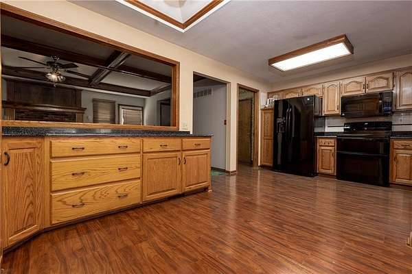 Discover the perfect blend of secluded nature and incredible potential on this stunning five-acre estate. This solidly built home sits in a truly picturesque setting, offering the quiet of the country while staying conveniently close to local amenities. The main level features a kitchen that opens to the living area designed for easy flow, alongside a large primary suite and two additional bedrooms. Step outside from the main level to an oversized deck that overlooks a beautiful in-ground pool-the ultimate setup for summer entertaining. The finished walk-out lower level provides even more versatility, complete with a partial second kitchen that is perfect for guests or a multi-generational living arrangement. From the basement, you are just steps away from the shared pond and a functional outbuilding ideal for hobbies or extra storage. While this home is well-constructed and full of character, it is simply waiting for your modern updates to shine. This is a rare opportunity to own significant acreage and a pool in a sought-after school district.