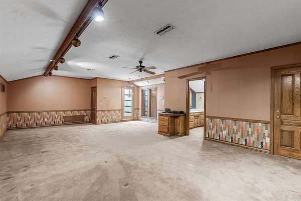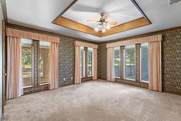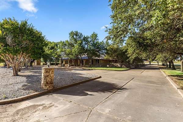 Western elegance meets custom craftsmanship in this 5,400+ SF executive home in Megargel. Stonework from the exterior with raised beds, private porches and entry areas on all 4 sides to interior with grand arched porch continued into the grand entry hall. Entertain with built-in smokers, grills and fry station under covered entertainment area just off family room. Features include a garden suite, dome-ceiling office with exterior private entry, vaulted dining, and formal living room. Amazing wood and stone work throughout with oblong shaped office with domed ceiling. Built ins thorough out this custom home. All 4 beds have en-suites with full baths. Bonus 3 bed 2 bath home, barn, stalls and additional 7.5 acres negotiable. Hunters Haven and a true Texas charm! Generator backup. Additional home, acreage, stables and barn available for negotiation. Some photos have been altered.