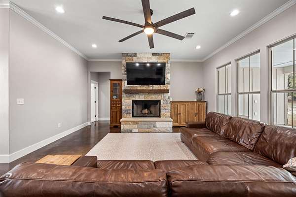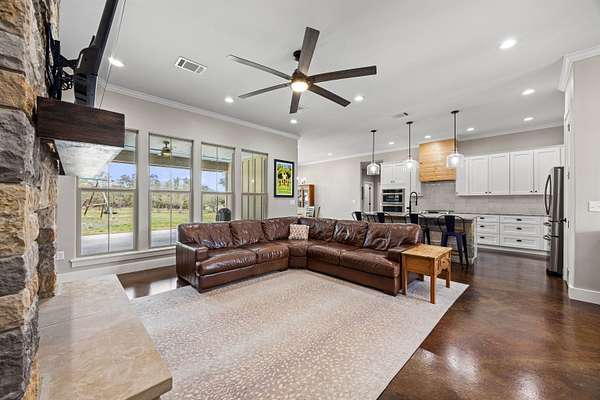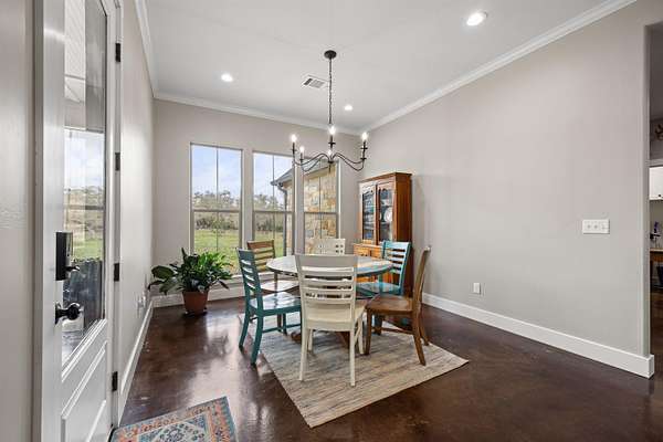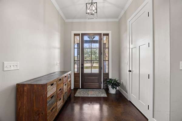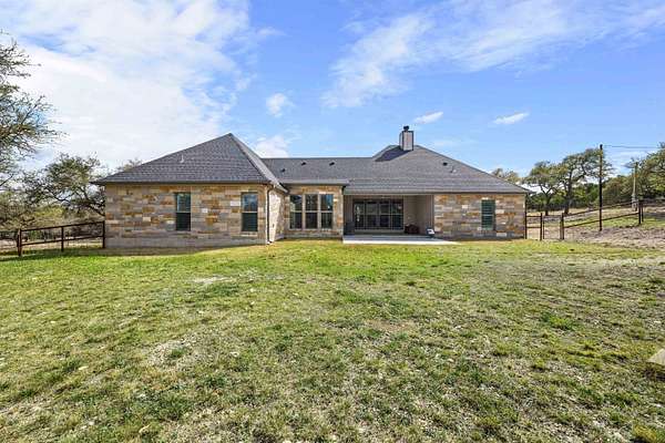 This beautifully newly built and well-maintained custom home offers the space and freedom that are becoming harder to find. Situated on 6 ag-exempt, unrestricted acres, the property provides privacy, beautiful trees, and a quiet setting that feels like true country living while still being just minutes from town. The home features 4 bedrooms and 3.5 bathrooms, all located on the main floor in a practical split-bedroom layout that provides privacy for the primary suite. The main living area is open and welcoming with large windows that bring in natural light and views of the surrounding property. The kitchen is designed for everyday living with plenty of space to gather, along with a large walk-in pantry that connects directly to the garage-making unloading groceries simple. Upstairs, a 160 square foot bonus room offers flexible space that could easily serve as a media room, home office, workout space, playroom, or flex space. The home also includes an attached 3-car garage, providing plenty of space for vehicles, storage, or equipment. Outside, a covered patio overlooks the peaceful acreage, offering a great place to relax and enjoy the quiet setting. The property also includes a 20x20 shop ideal for equipment storage. With no restrictions and an ag exemption already in place, the property offers flexibility that is becoming increasingly rare this close to Burnet. If you've been looking for a newer home with land, privacy, and freedom to use your property the way you want, you won't want to miss this one.
