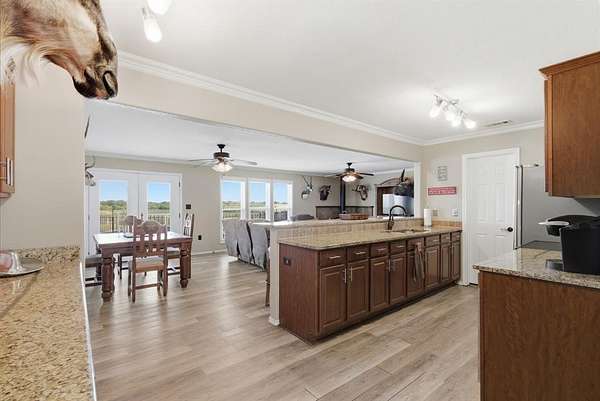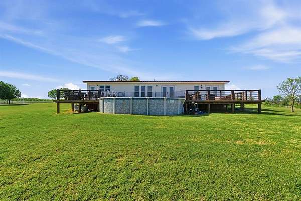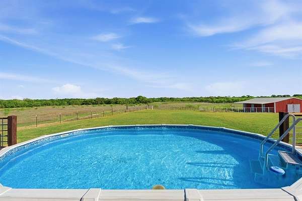 Outdoor living is just as impressive, featuring a spacious deck that spans the entire length of the home—perfect for entertaining or relaxing while taking in the surrounding views. The above-ground pool has been thoughtfully integrated and sunken to deck level, creating a seamless and inviting space to cool off during those warm Texas days.