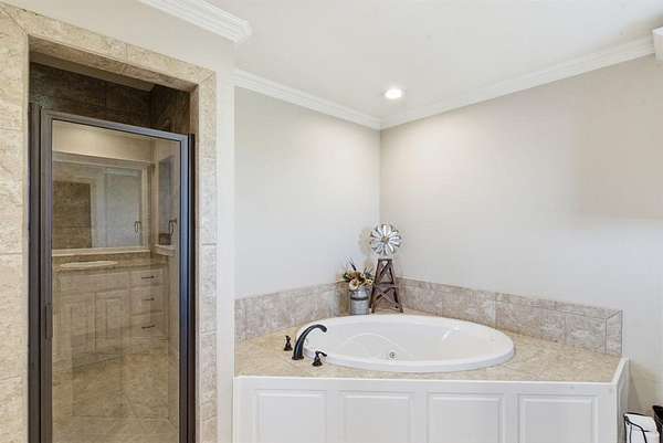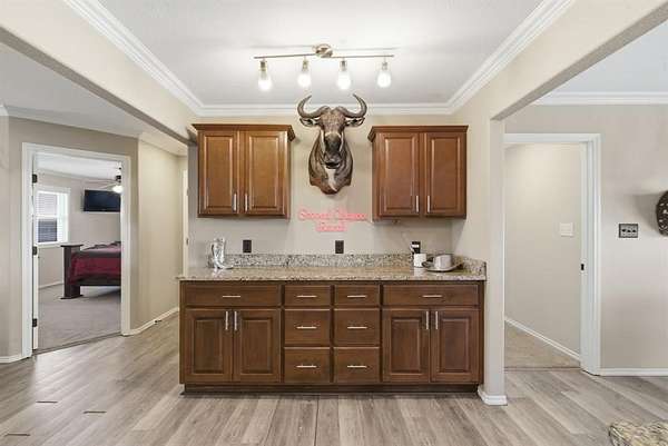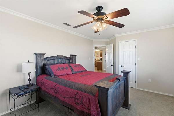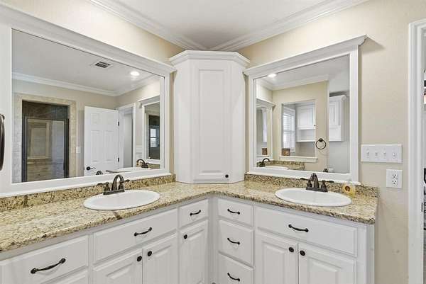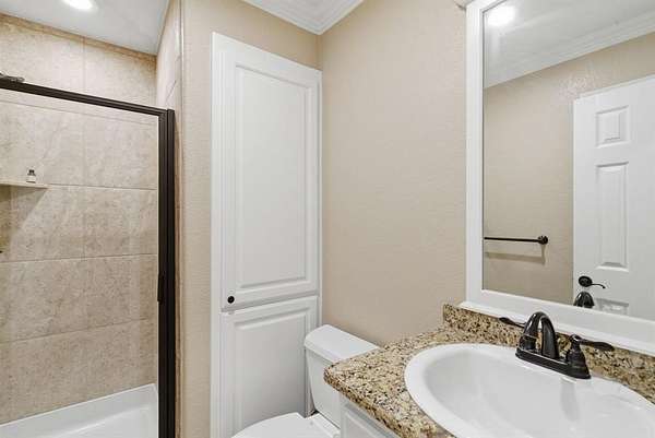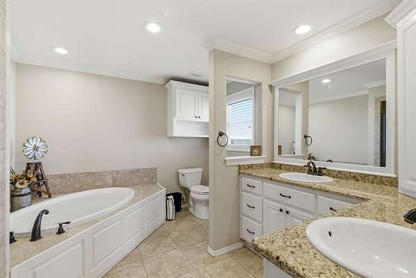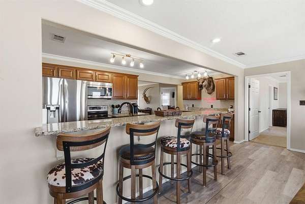 Step inside the home and you’ll immediately notice the quality finishes and thoughtful design throughout. Beautiful granite countertops add a touch of elegance to the kitchen and bathrooms, while crown molding and abundant recessed lighting enhance the overall warmth and sophistication of the space. With four generously sized bedrooms and three full bathrooms, there’s ample room for family, guests, or a home office setup.