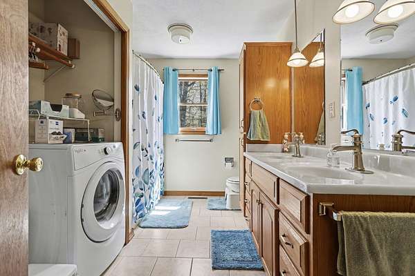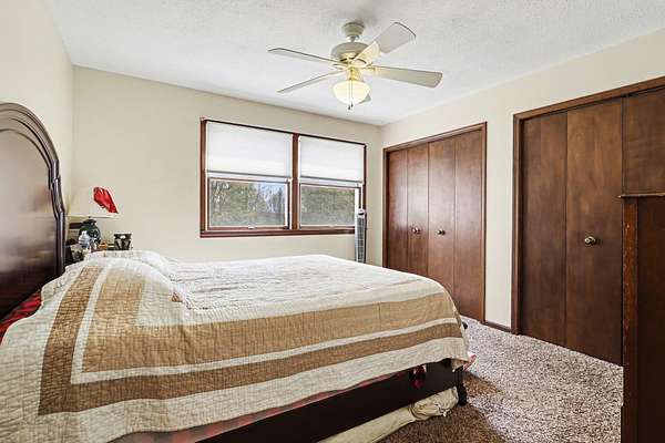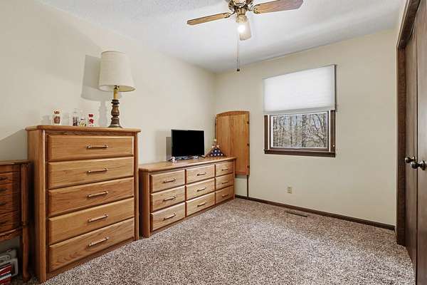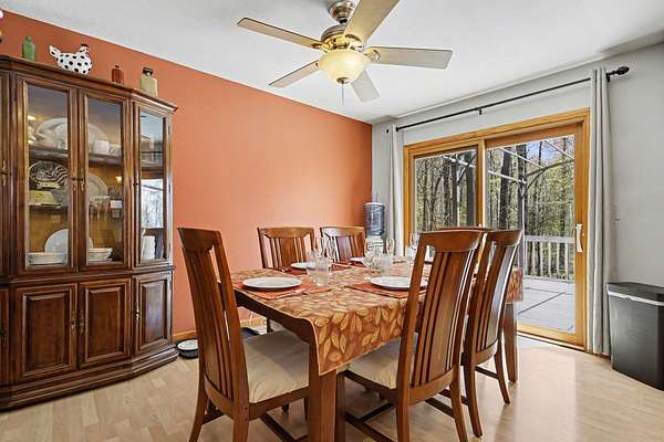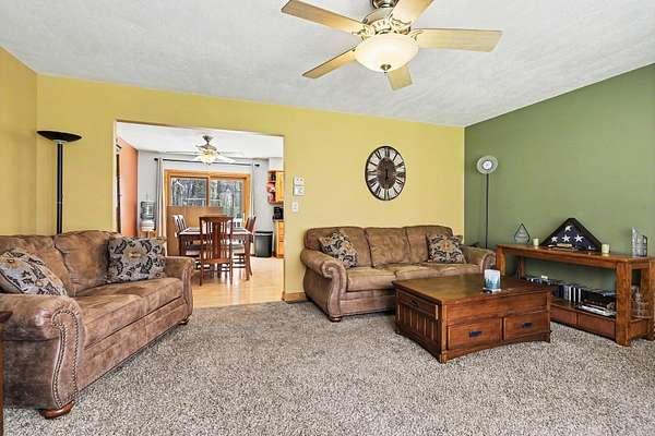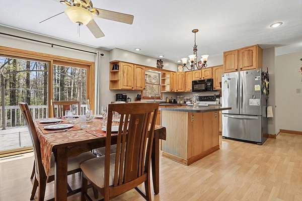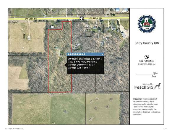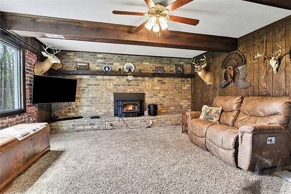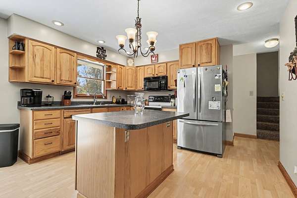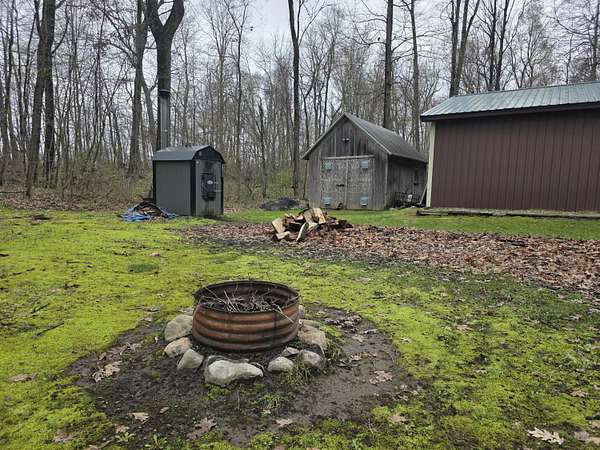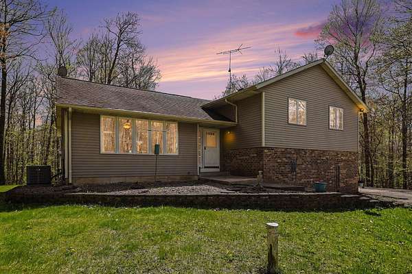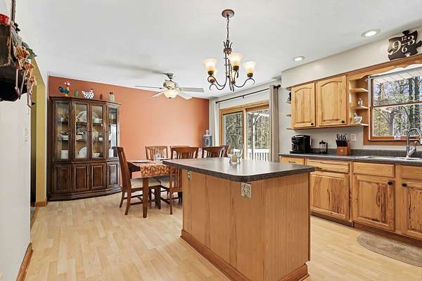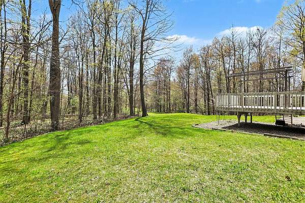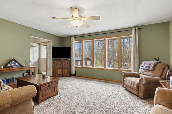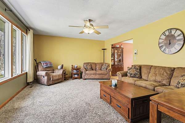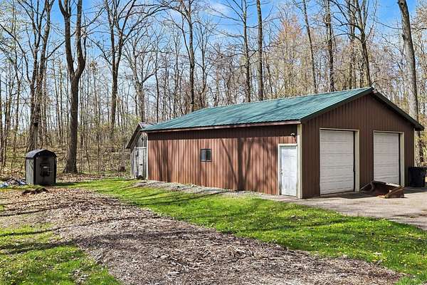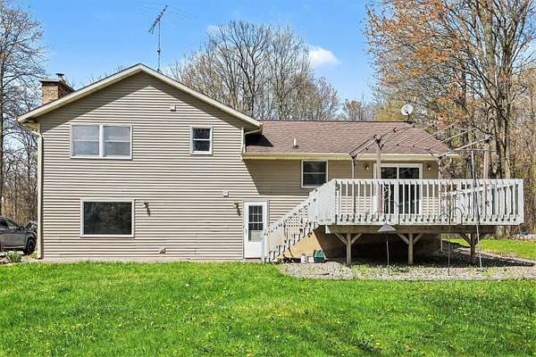 Set on 11 private acres, this inviting home offers peaceful country living just five minutes from downtown Hastings. The main level features an open kitchen, dining, and living area, highlighted by beautiful cabinetry and a center island--perfect for gathering. Enjoy scenic views from the spacious 16 x 15 deck or through the new picture window in the cozy family room, complete with a large fireplace. Wildlife like deer and turkeys are frequent visitors. Upstairs includes four bedrooms, convenient same-level laundry, and an extra flexible room for an office or hobbies. The partially finished basement adds additional living potential. Outside, you'll find a 30 x 40 pole barn, a large shed, and a wood burner that efficiently supplements heating. Recent updates include a newer furnace and A/C (under a year old), a new well bladder, and 15 inches of attic insulation for energy efficiency. All appliances are included, making this home move-in ready and full of comfort, space, and charm.