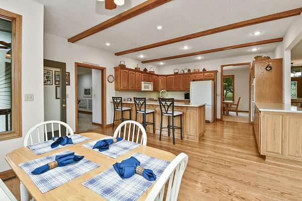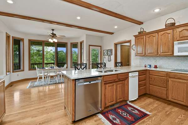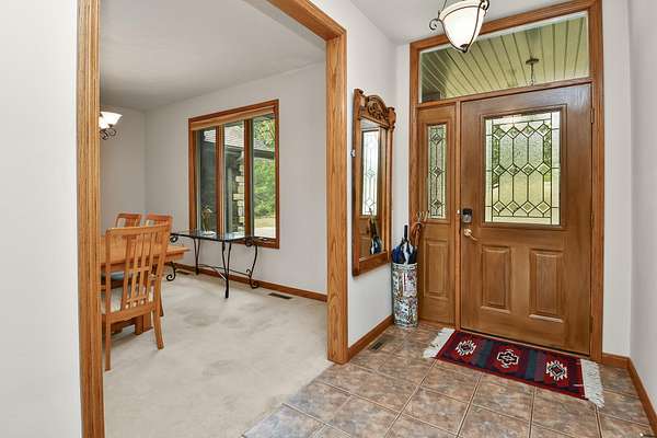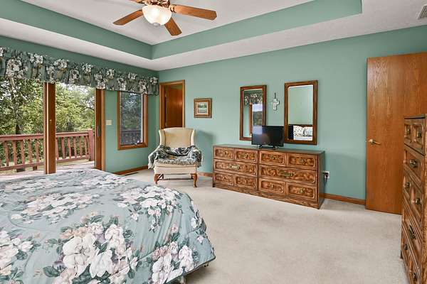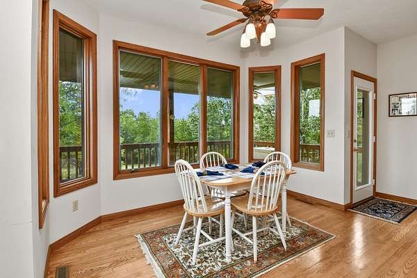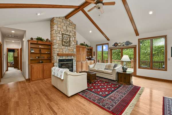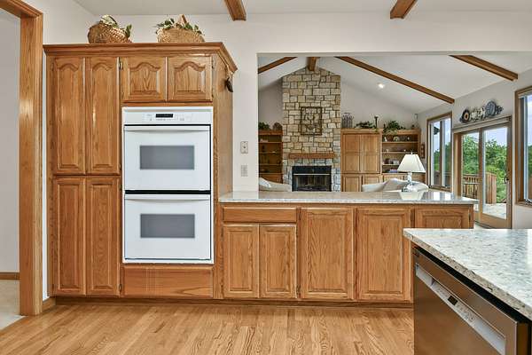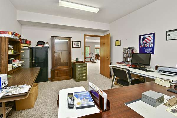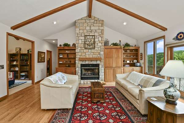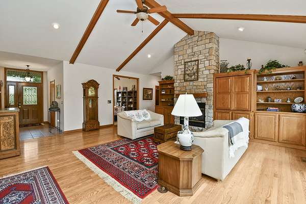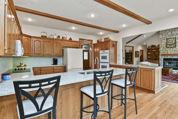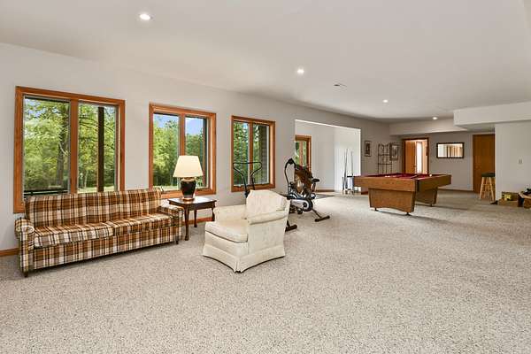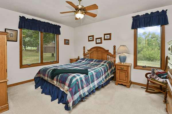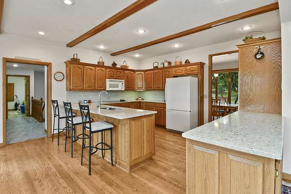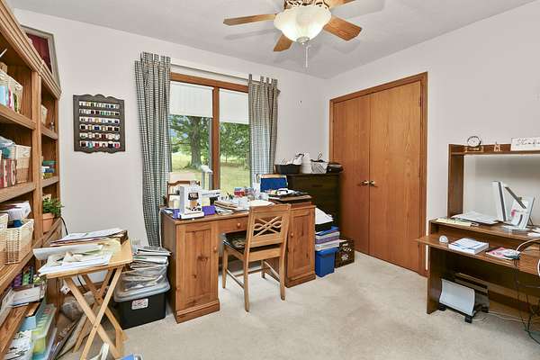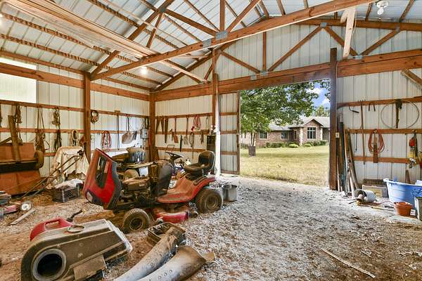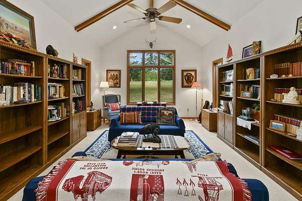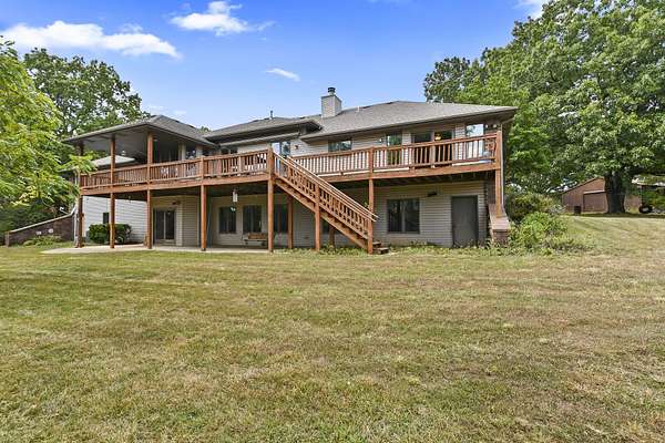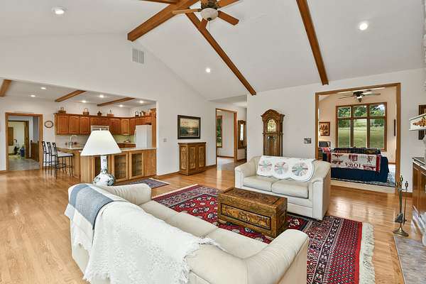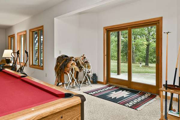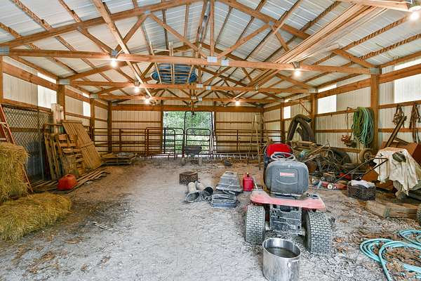 Welcome to your own private sanctuary! This impressive 40-acre equestrian property offers the epitome of peaceful seclusion. It boasts a one-owner custom-built walkout basement home with 5,140 finished square feet, a 30' x 40' barn, horse corral, and an oversized 2-car attached garage.Stepping inside the home, you'll be greeted by a beautiful, inviting open floor plan featuring vaulted, beamed ceilings, beautiful hardwood floors, a wood-burning stone fireplace, an expansive deck, and an amazing view of the property from every window. The main level includes a formal dining room, a library or study, a main-floor owner's suite, two additional bedrooms, two and a half bathrooms, and a large laundry room. The spacious kitchen is complete with granite countertops, double ovens, and abundant cabinetry.The lower level offers a second living area, two additional bedrooms, a private office space, a bathroom, and a 416-square-foot indoor workshop space with walk-out access. Additional features include Andersen Windows and Doors throughout, a water softener system, a central vacuum system, and the lower level is plumbed for a second kitchen addition. NEW ROOF IS BEING INSTALLED