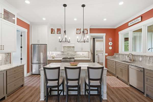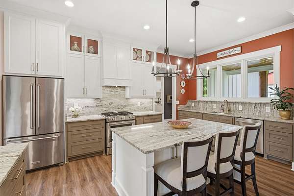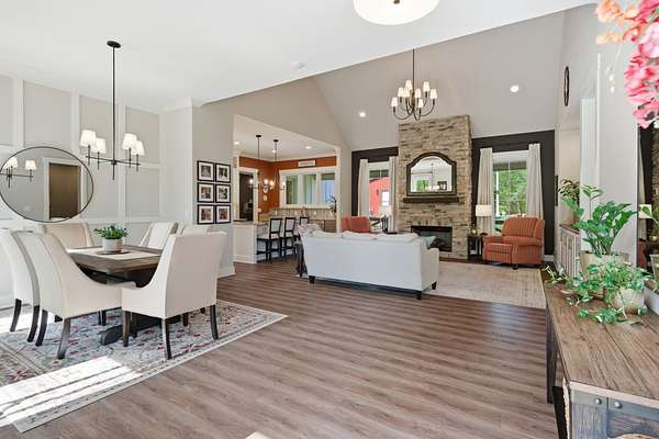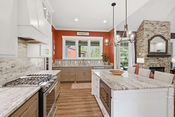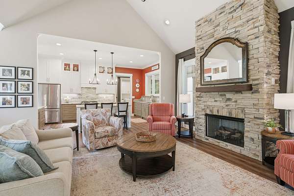 Thoughtfully designed with an open, flowing layout, this home showcases superior finishes, designer lighting, and impeccable attention to detail throughout. The heart of the home features a beautifully appointed kitchen with stainless steel appliances, seamlessly opening into expansive living spaces anchored by a striking gas fireplace—perfect for both intimate evenings and elevated entertaining.
