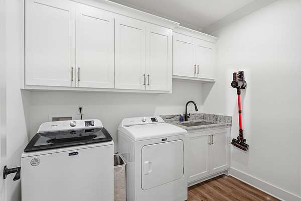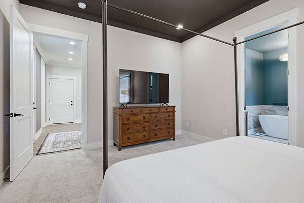 The primary suite is a true retreat, featuring a spa-inspired bath with a soaking tub, walk-in shower, and an impressive, oversized walk-in closet. A versatile bonus/flex suite with full bath offers ideal accommodations for guests, a private office, or additional living space. An unfinished 15x14 space above the primary presents a rare opportunity to customize and expand.