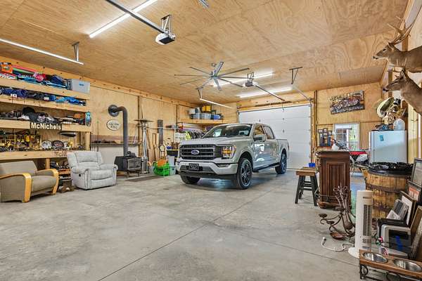- A 30x40 custom barn/garage with 14’ covered lean-to, drive-through access, water, fans, and openers