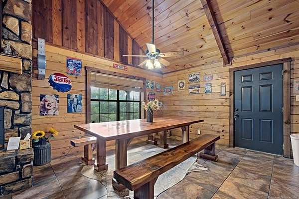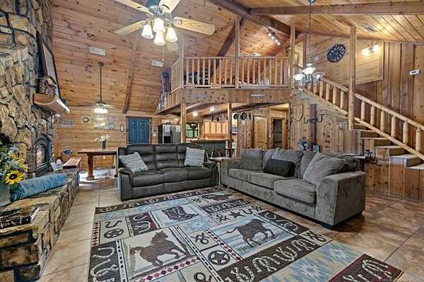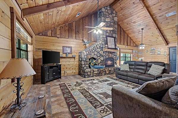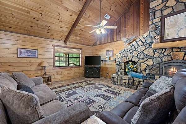 MOTIVATED SELLER! This 24-acre place offers the best of both worlds, peace and quiet in a secluded and scenic environment and outdoor enjoyment galore both here and nearby where recreational opportunities abound. Its desirable location in the Quachita Mountains is ideally located between Broken Bow Lake and Pine Creek Lake, in addition to being just 2 miles from the Glover River. These offer great fishing, boating, and other activities and are very scenic, with the Glover River ranking as 1 of the 10 most beautiful places in Oklahoma to visit. Another is Beavers Bend State Park on the shores of Broken Bow Lake and the Mountain Fork River only 16 miles from the property, so spend a day enjoying it then retreat to your own private paradise. If riding ATV's, hiking, or just enjoying nature is your thing, then you will enjoy being just a mile from access to U.S. Forest Service land. At the cabin, from the wrap-around porch and huge pavilion-like covered deck, you can cook outdoors, entertain guests, or view the pond beyond where you can fish or watch the deer and small wildlife that come there to drink. There is even an inviting hot tub to enjoy. Inside the furnished Satterwhite log cabin rustic beauty defines this place making you feel as if you have brought the outdoors in. Open-concept design is highlighted by soaring ceilings in the living area where a floor-to-ceiling stone fireplace surround serves as a lovely divider between the living and dining areas. Kitchen fully equipped with all stainless appliances including oversized gas range. Two spacious bedrooms and full bathroom with separate shower and charming clawfoot tub downstairs, in addition to loft area, bedroom and full bathroom upstairs. Phenomenal separate gameroom building and garage. Used as a successful vacation rental property but also suited for those looking to take advantage of having a second home in a stunning, private setting, where the worries of the world just melt away at Lazy J. Call to tour!